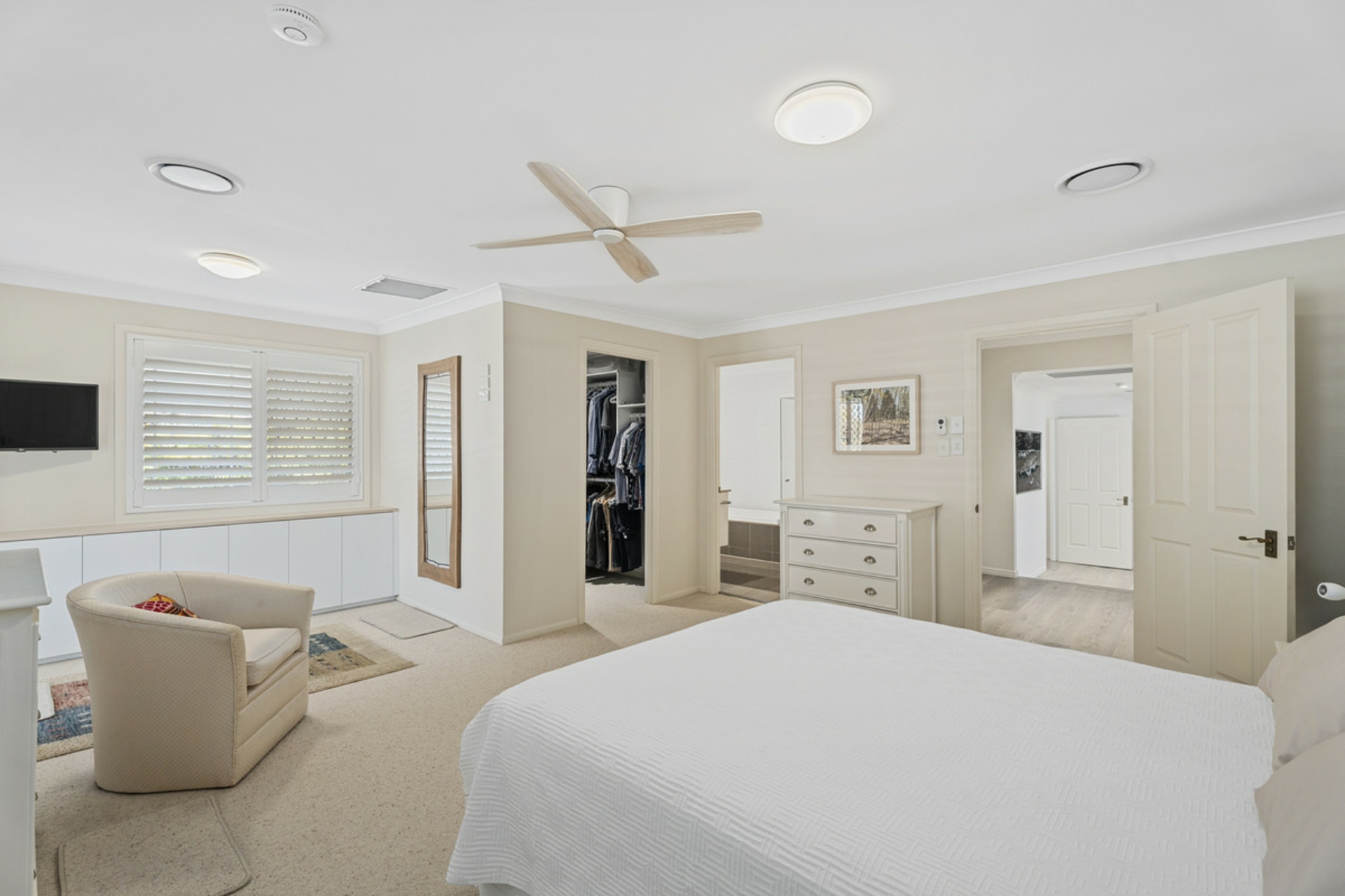 • Ensuited master bedroom with walk in robe, storage room and direct access to the entertaining area overlooking the pool