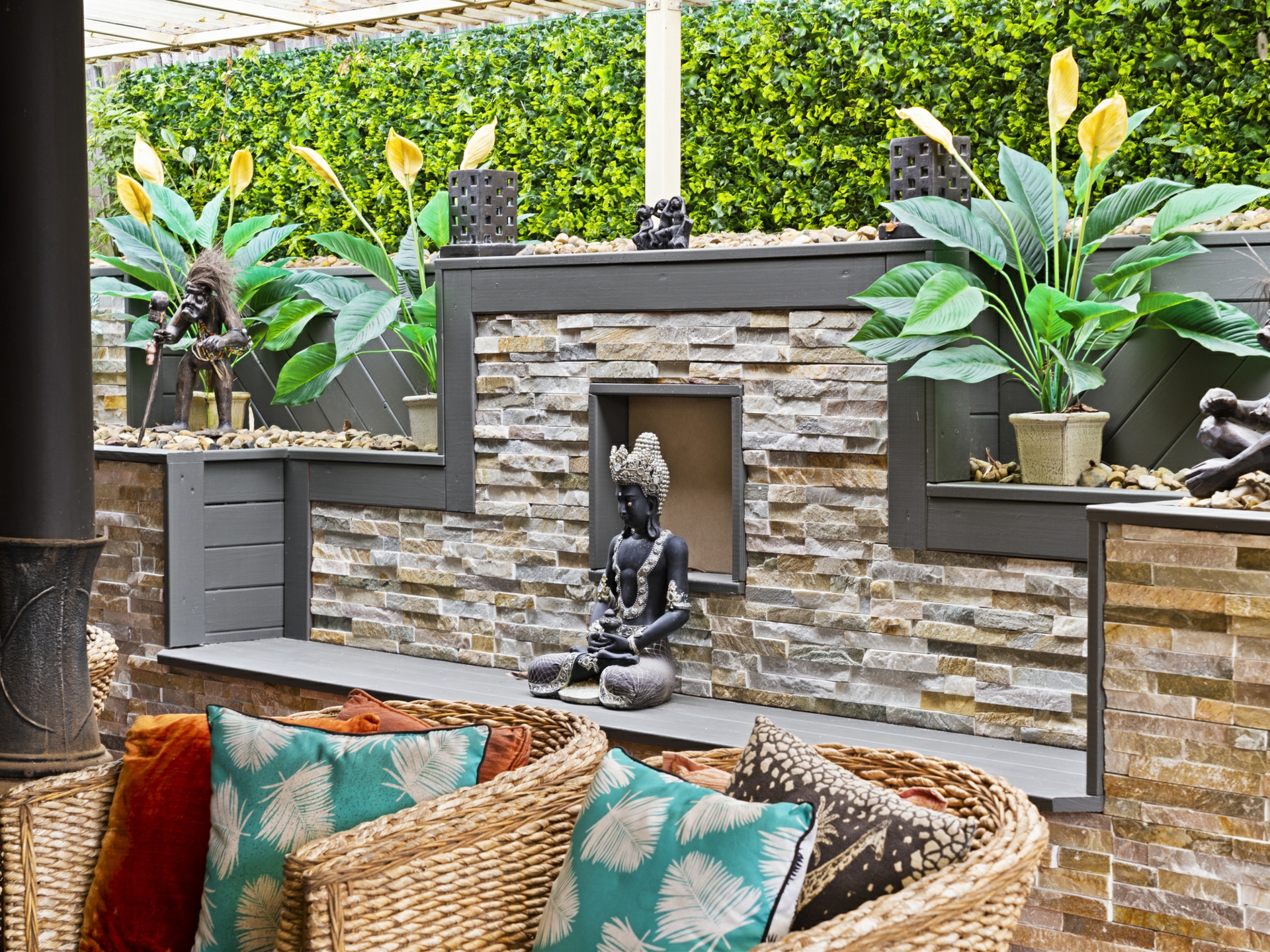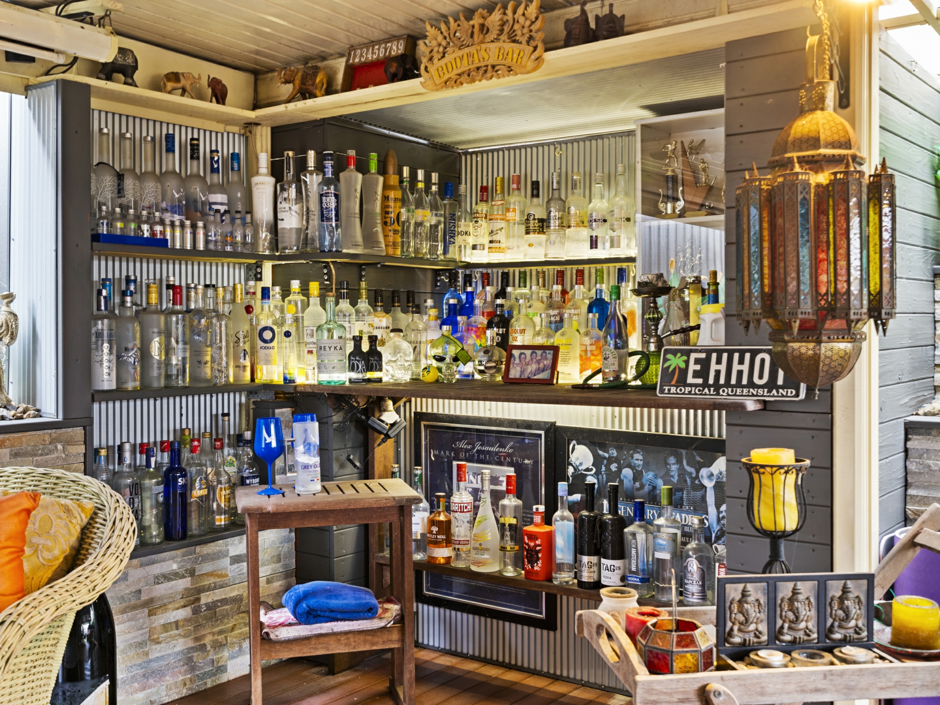 - Massive covered al fresco complete with heated spa, potbelly stove, outdoor bar and movie projector
