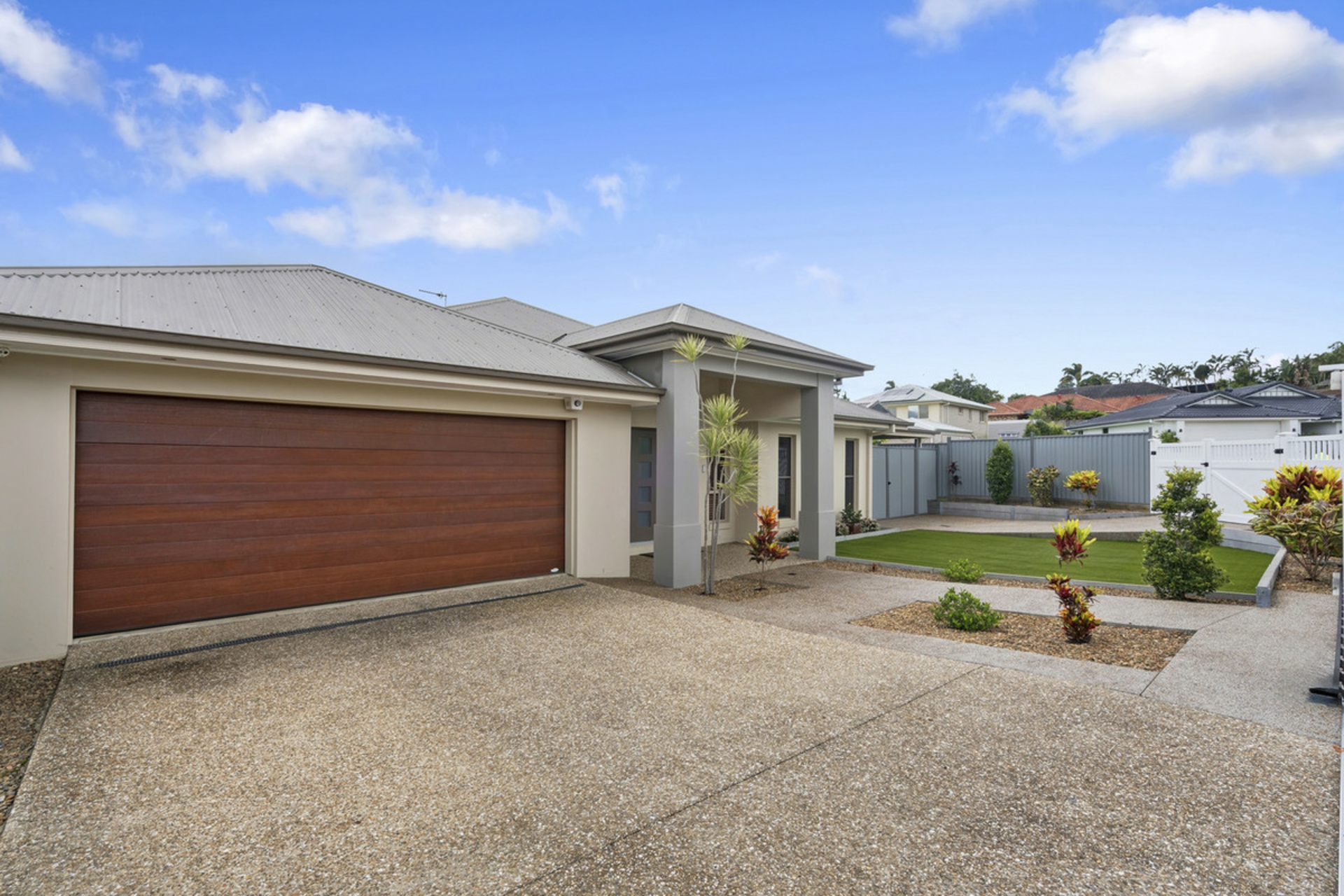 • Hamptons-style PVC fencing with electric gate