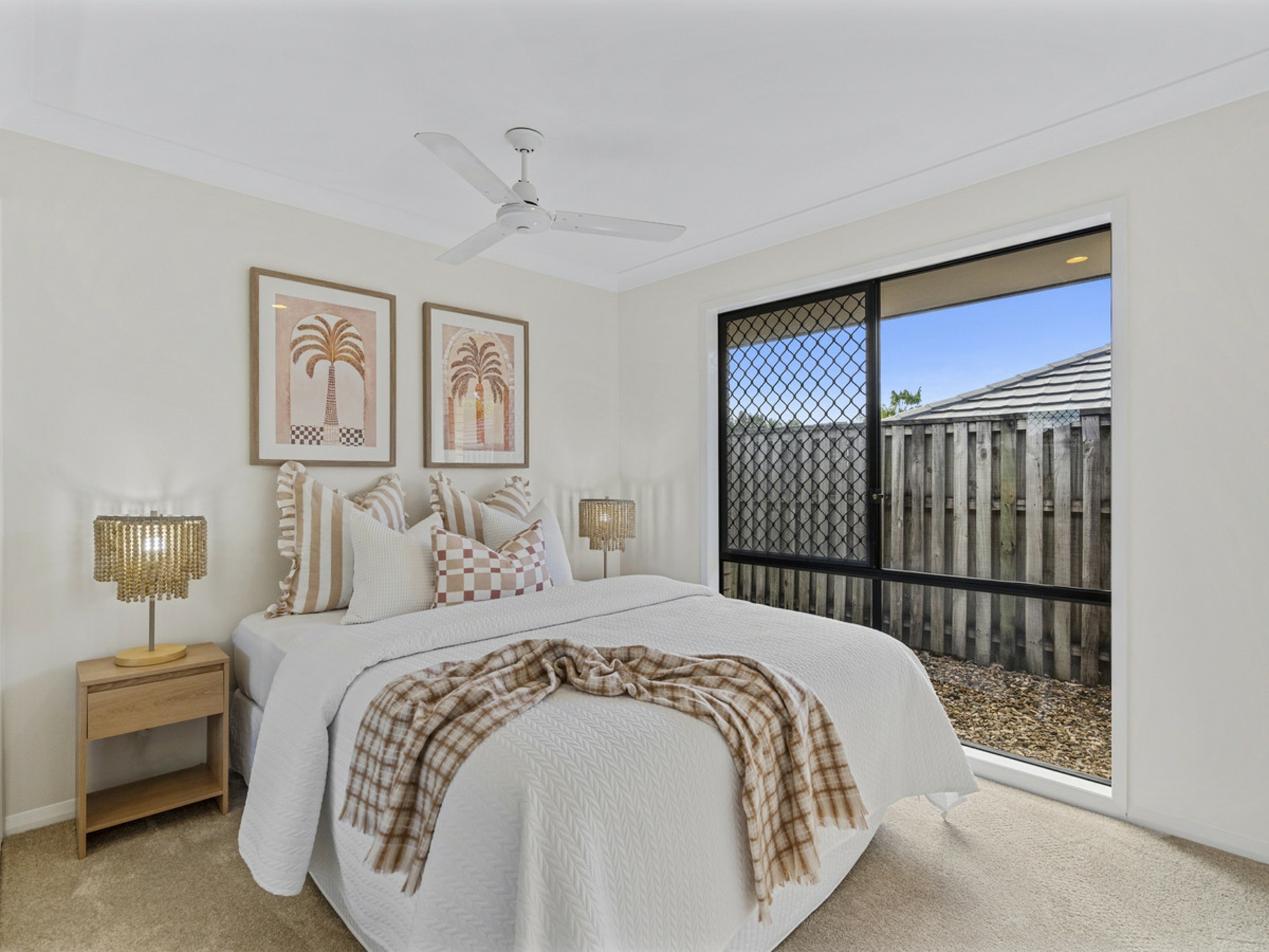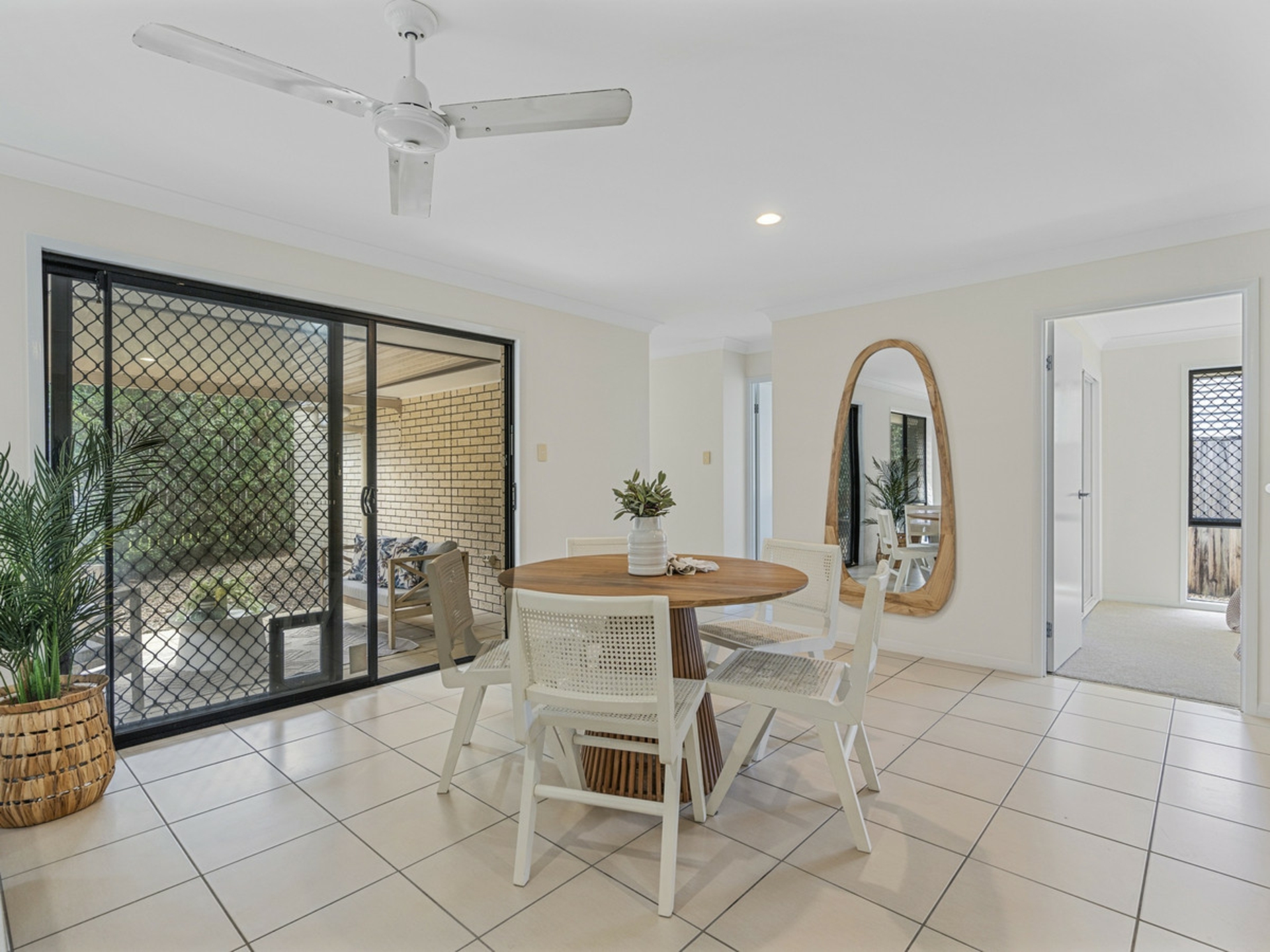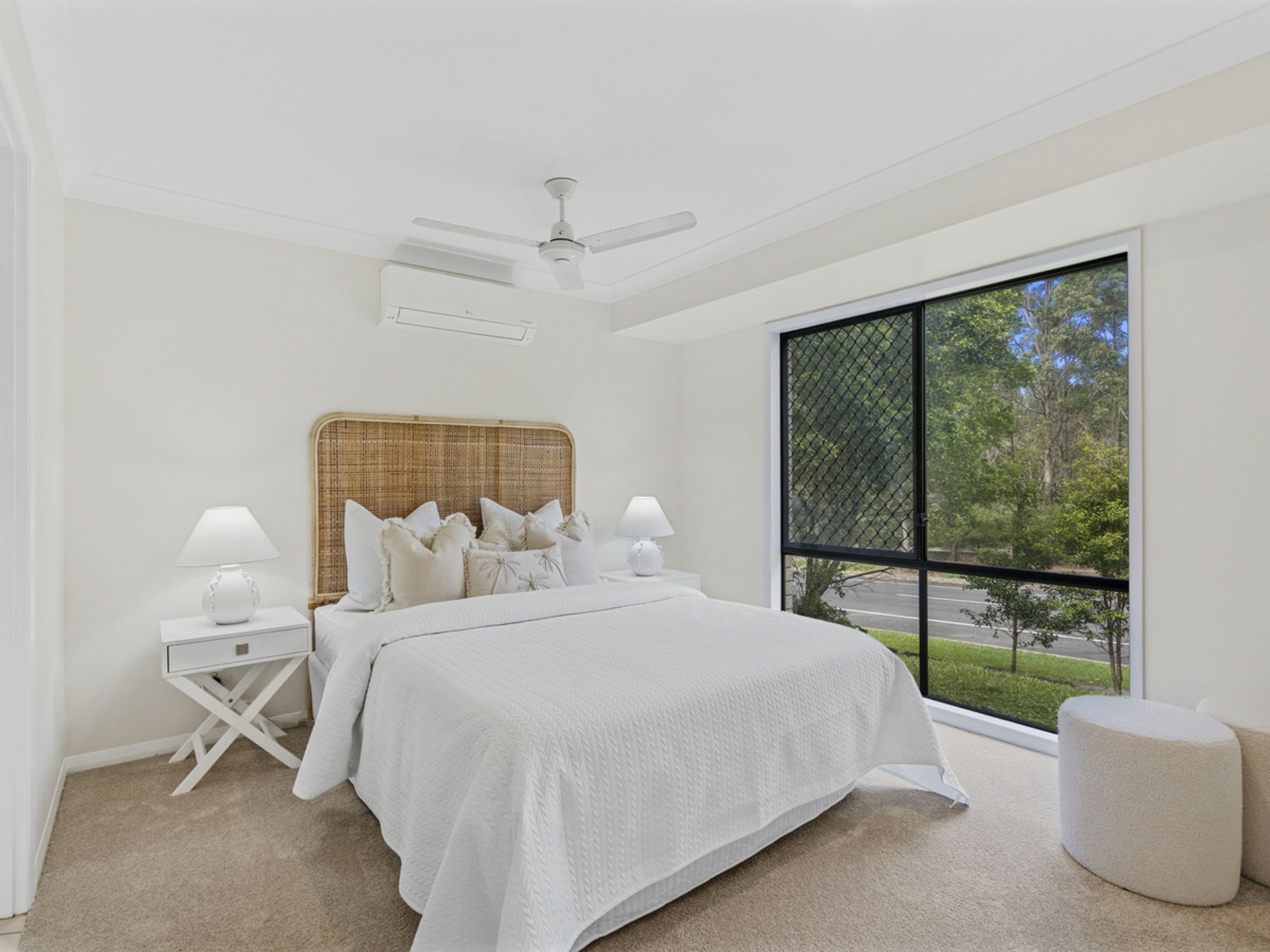 4 spacious bedrooms all with build in wardrobes and ceiling fans. The master bedroom has a walk in wardrobe and a private ensuite bathroom. It is also air conditioned.