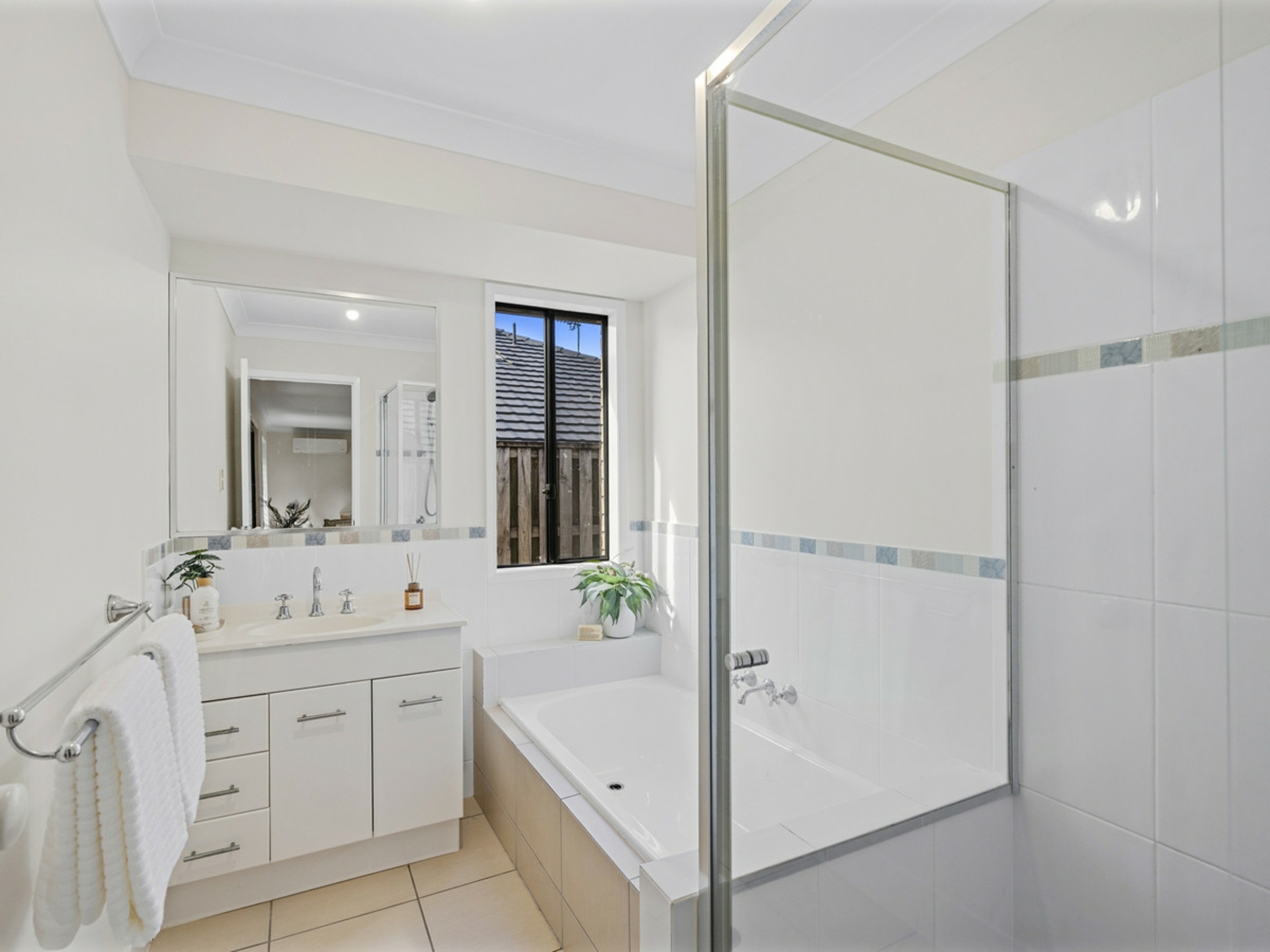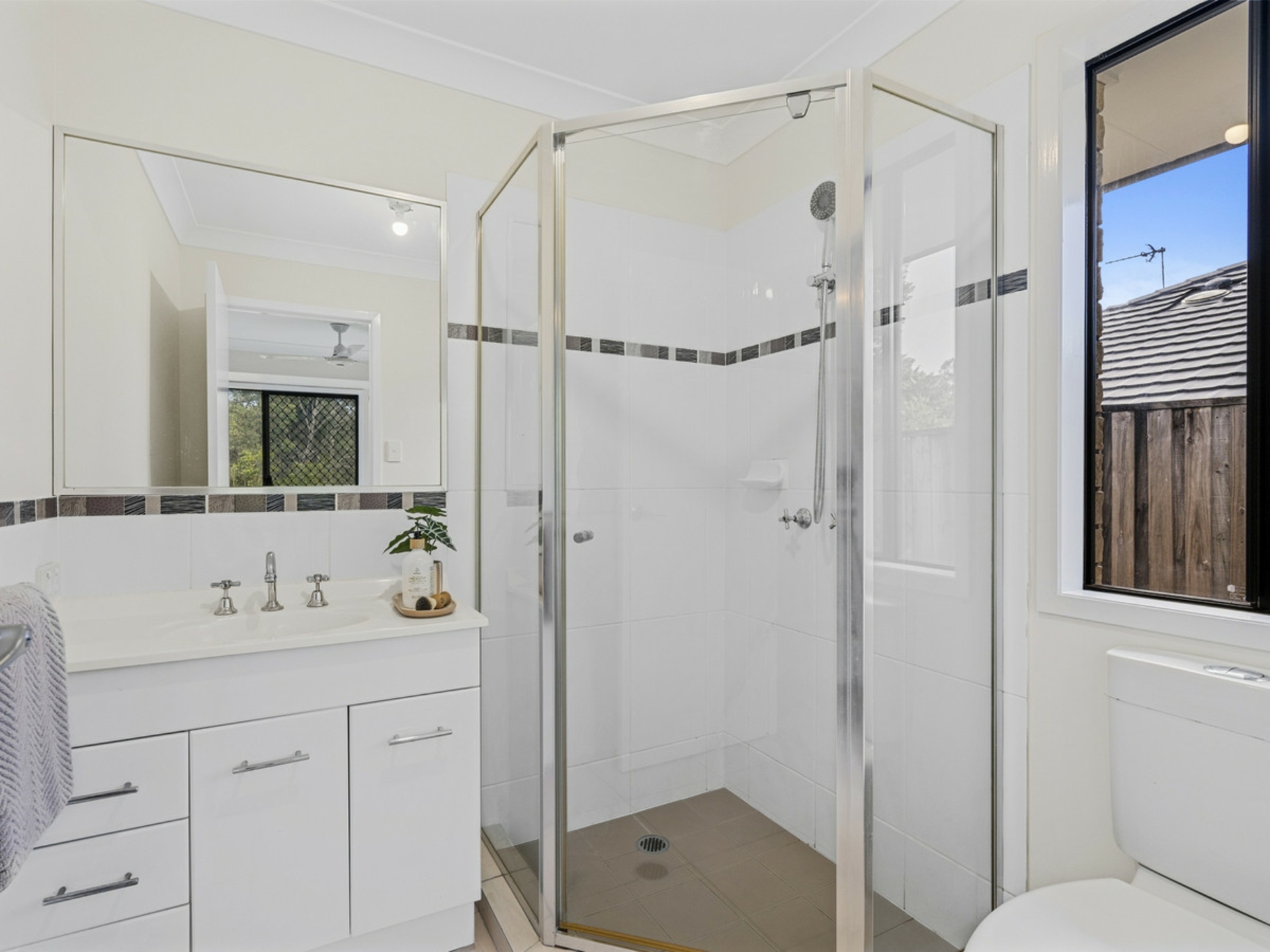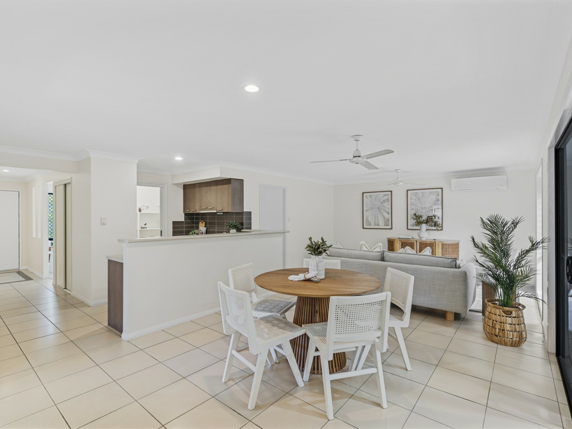 4 spacious bedrooms all with build in wardrobes and ceiling fans. The master bedroom has a walk in wardrobe and a private ensuite bathroom. It is also air conditioned.
