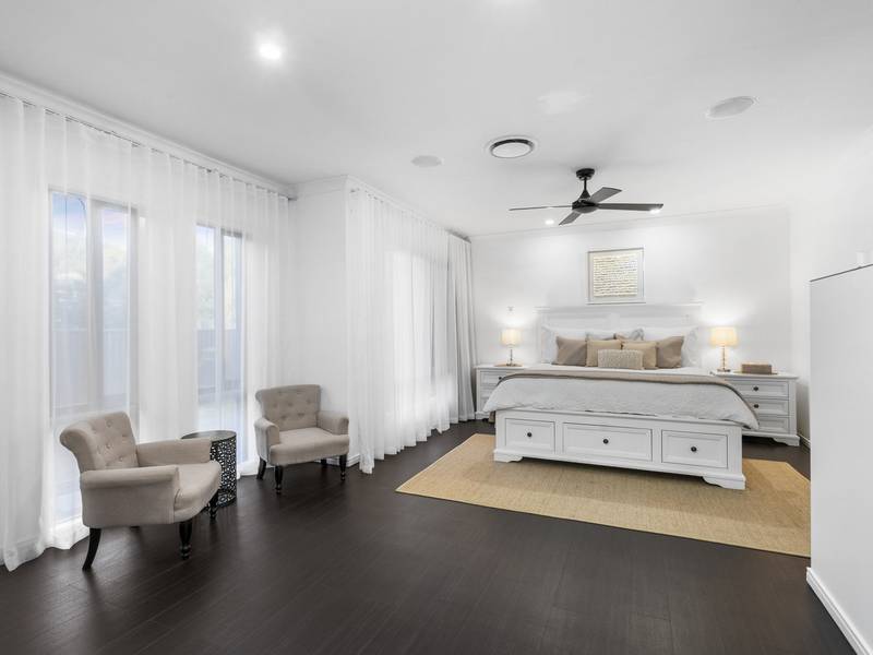 Master bedroom suite with twin walk in robes, en suite, shower, vanities