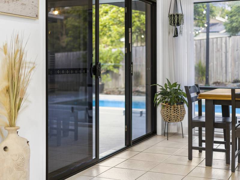 Dining area linking the alfresco courtyard and pool