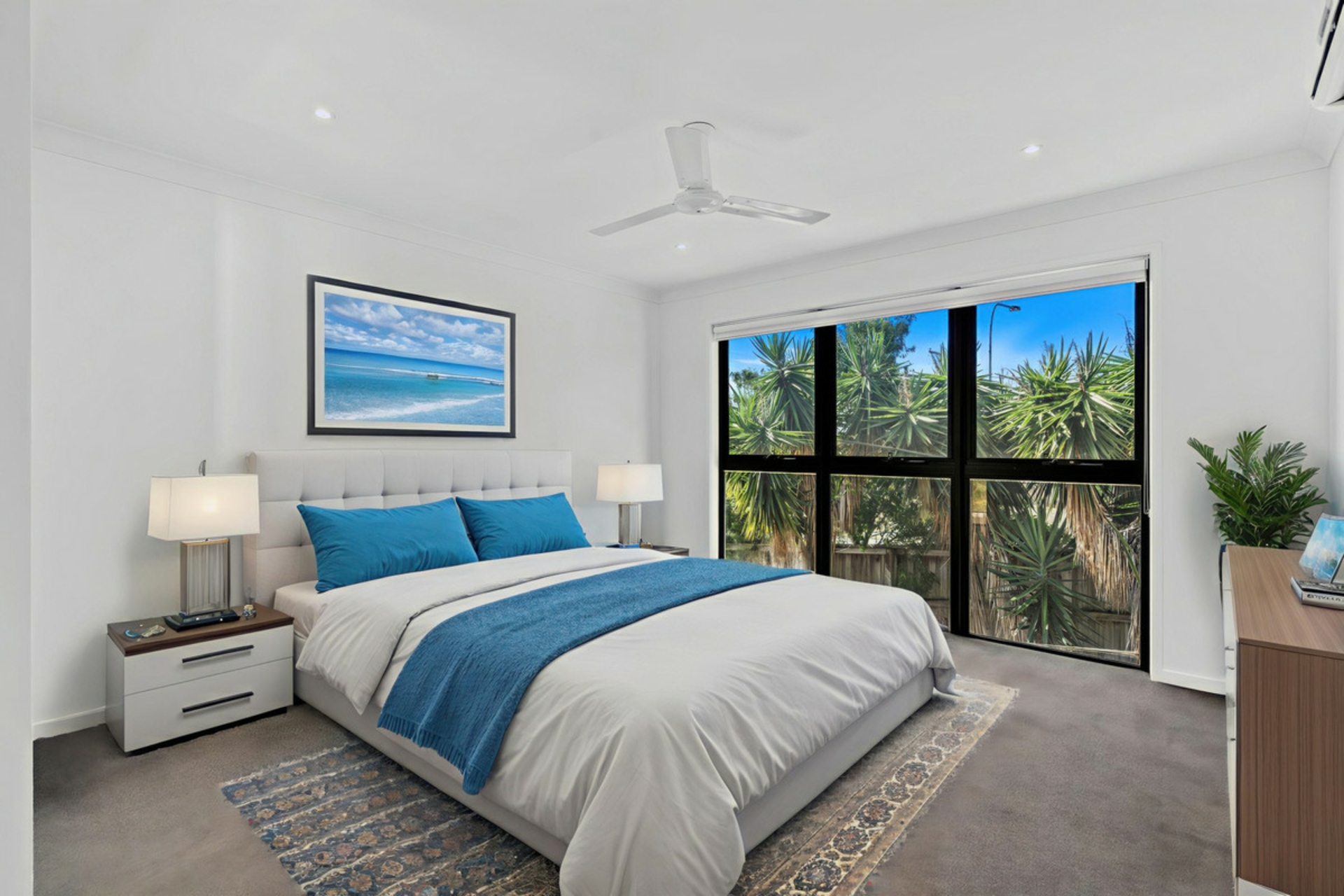 Master bedroom with walk-through robe, ensuite, ceiling fan & air-conditioning