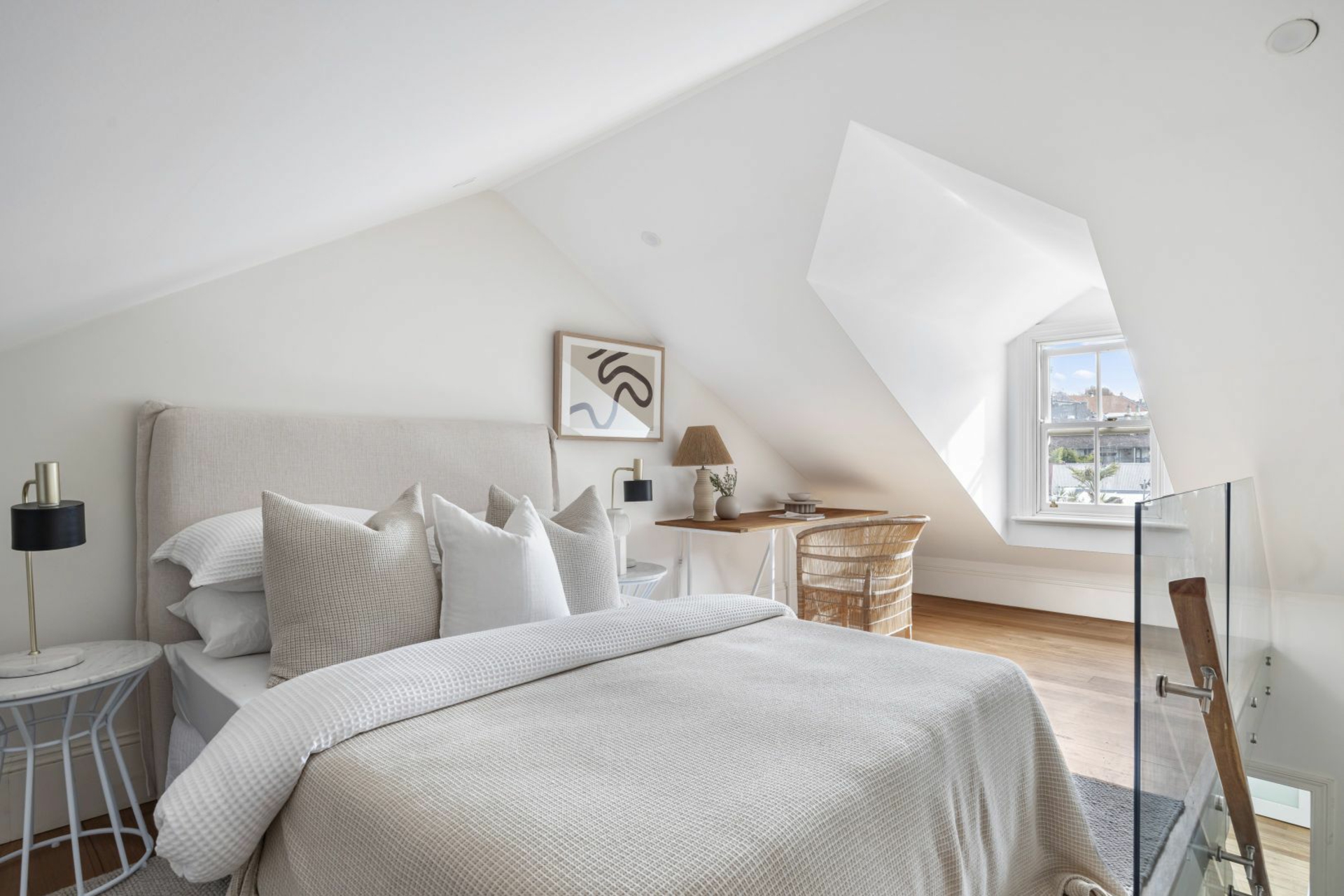 You won't find a better starter home than this creatively redesigned Victorian semi in a tucked-away pocket of Paddington between The Intersection's high-end fashion hub and Five Ways' cafe and social scene. In a leafy enclave just off Oxford Street, the bright and airy two-storey home has been conceived as a stylish entertainer with oversized living space and a big backyard with a stone-paved terrace and sunny lawn. A north-west rear aspect brings in plenty of sunshine with polished hardwood floors, soaring ceilings and fresh white walls creating a sanctuary like feel. Featuring a loft-style bedroom with a dormer study area, recreate as a two-bedroom home plus study with the approved DA.