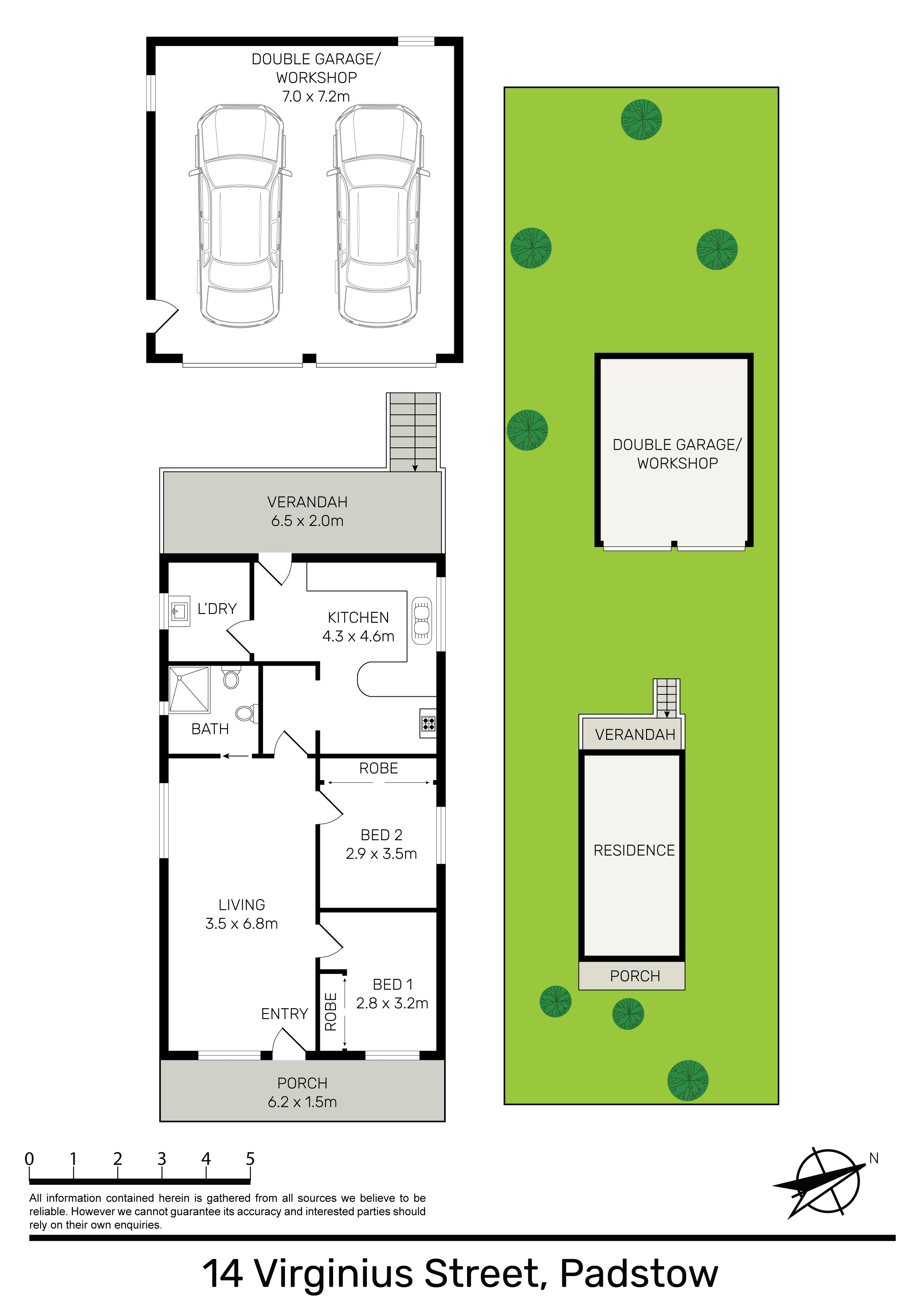 The existing residence provides comfortable accommodation, featuring a practical layout with multiple living zones, two bedrooms, and a functional kitchen and bathroom. Adding further value is a separate double garage/workshop, ideal for tradies, storage, or additional workspace.
