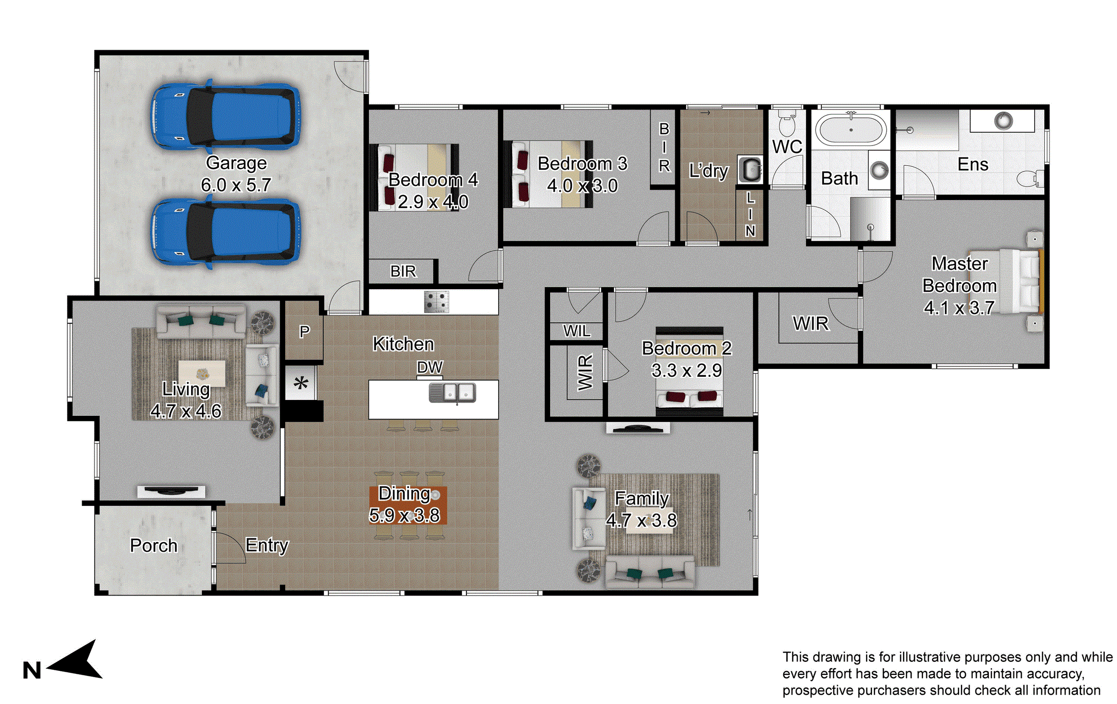 The spacious family living zone at the rear provides the perfect space to unwind, entertain, or enjoy quality time with loved ones. Accommodation includes a well-sized master bedroom with walk-in robe and private ensuite, while the remaining three bedrooms all have excellent proportions and serviced by a central bathroom.