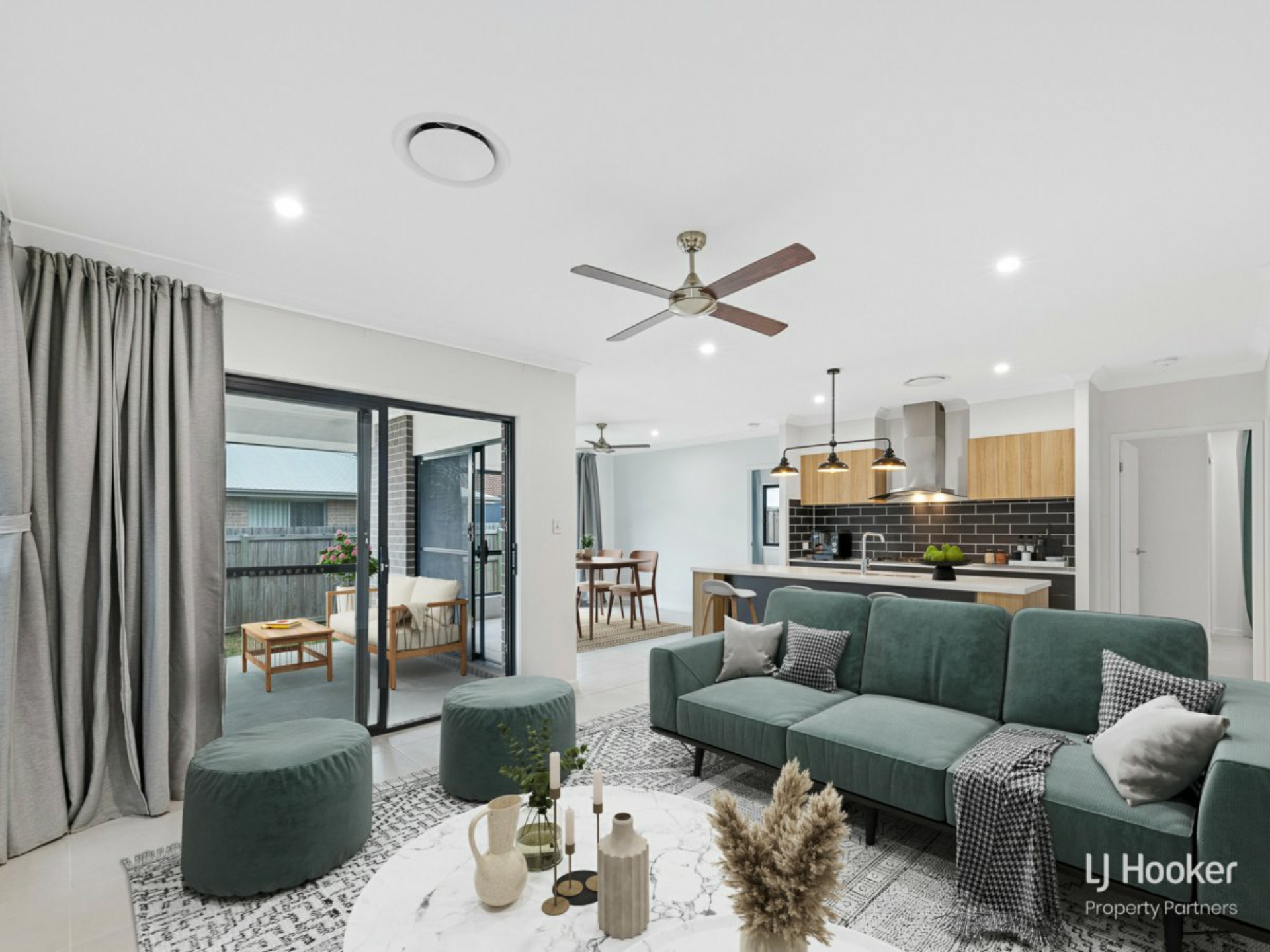 - Combined lounge and dining off kitchen plus separate media room