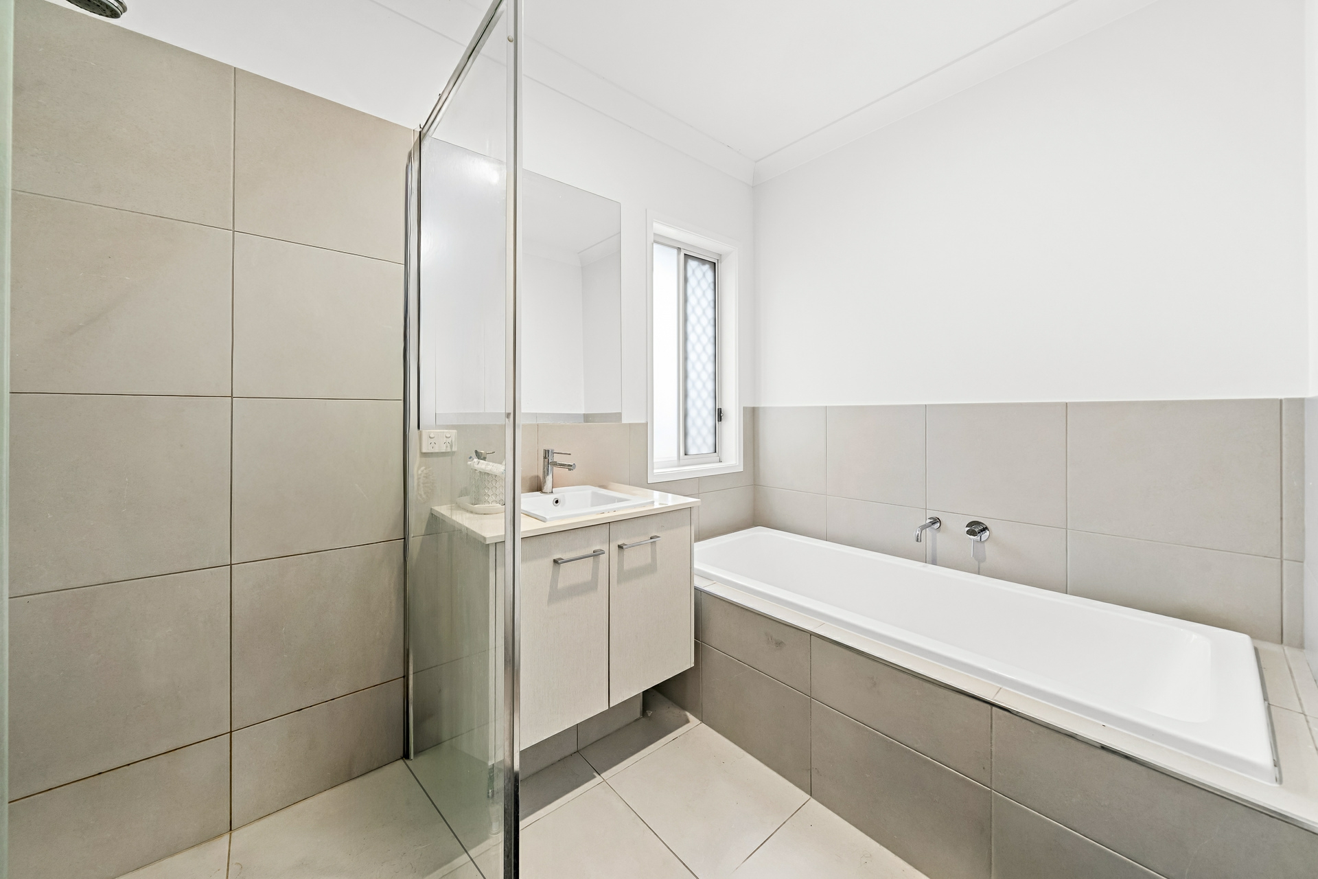 The master bedroom is a private retreat, complete with a generous walk-in robe and a modern ensuite. Each of the other three bedrooms comes with built-in robes, ceiling fans for optimal airflow. The second bathroom is thoughtfully designed with a bathtub, providing a relaxing space for baths or accommodating family needs. The layout ensures privacy for parents while keeping the bedrooms accessible and functional for children or guests.