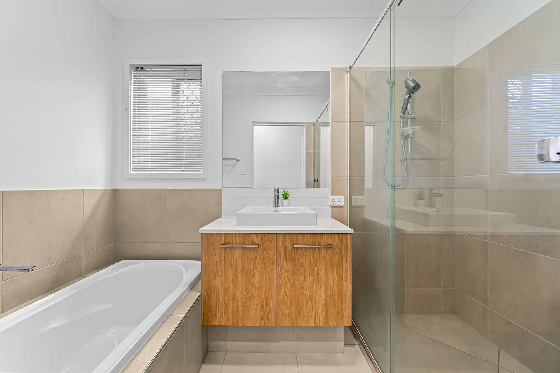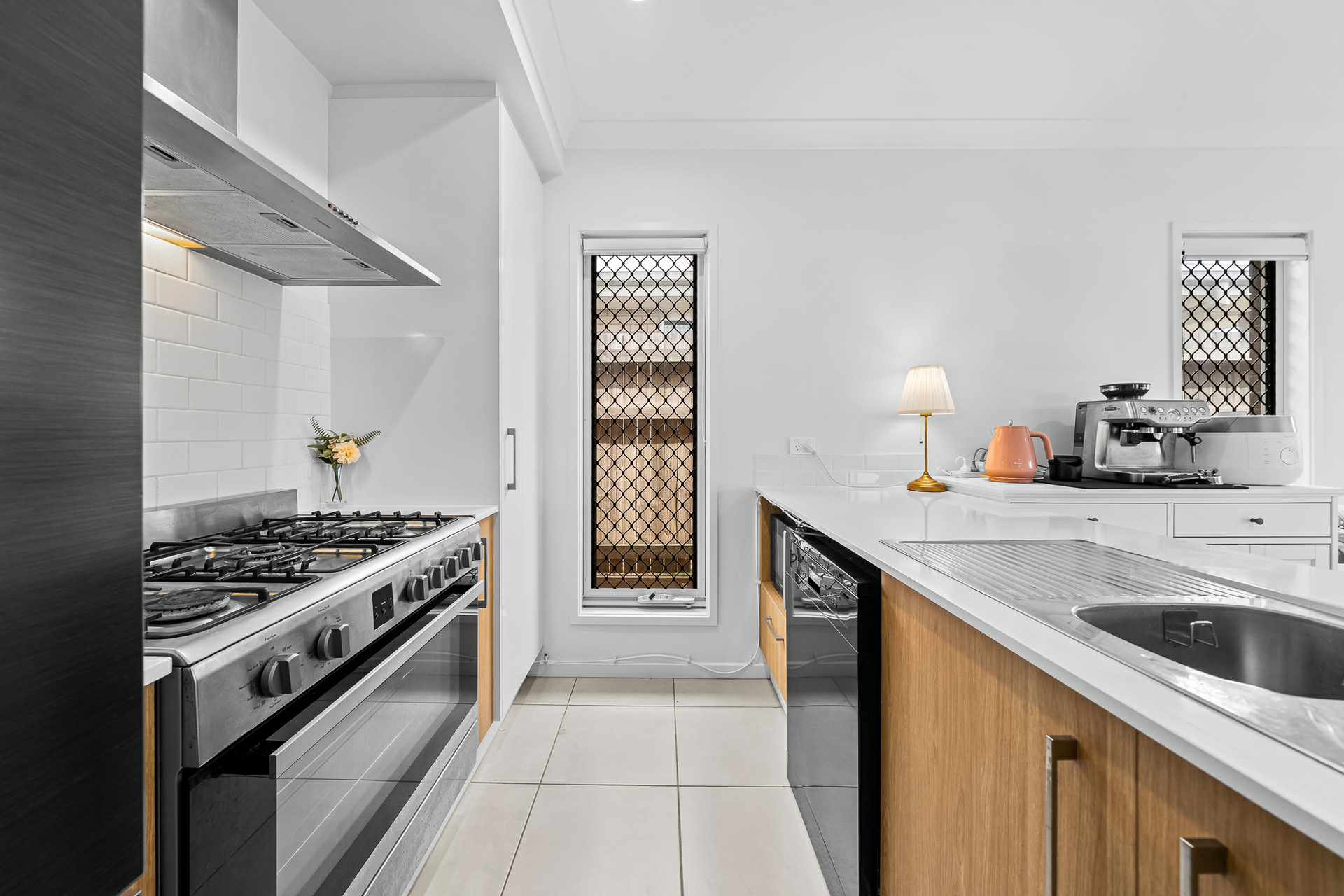 - Spacious kitchen with 900mm free range gas cooktop, modern stone benches, dishwasher.