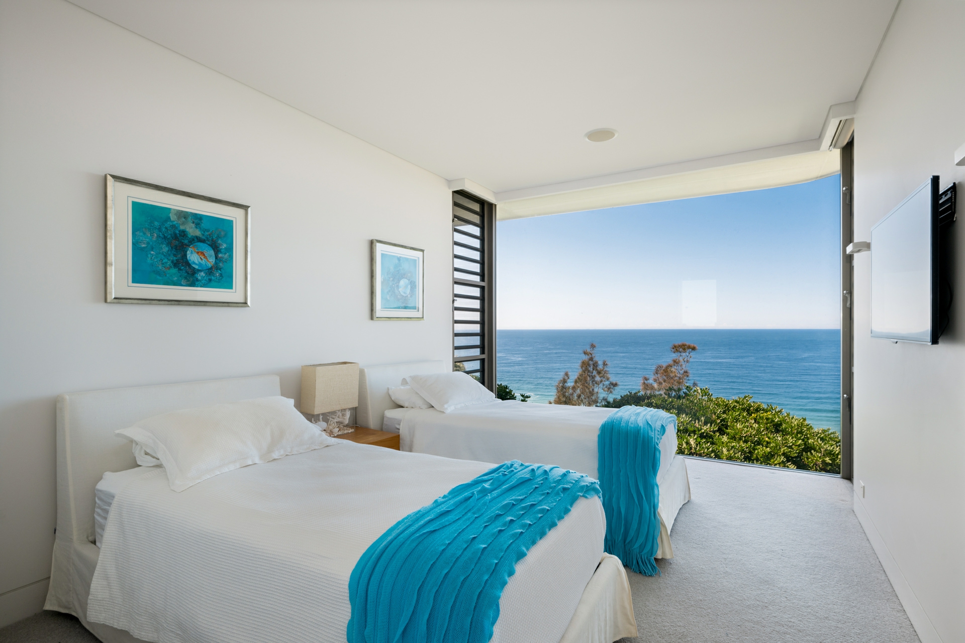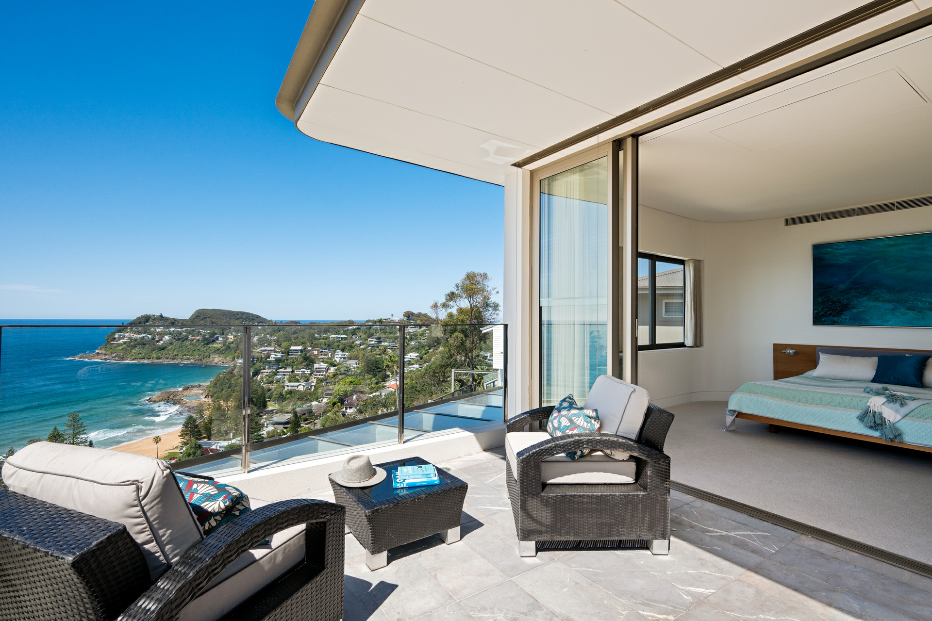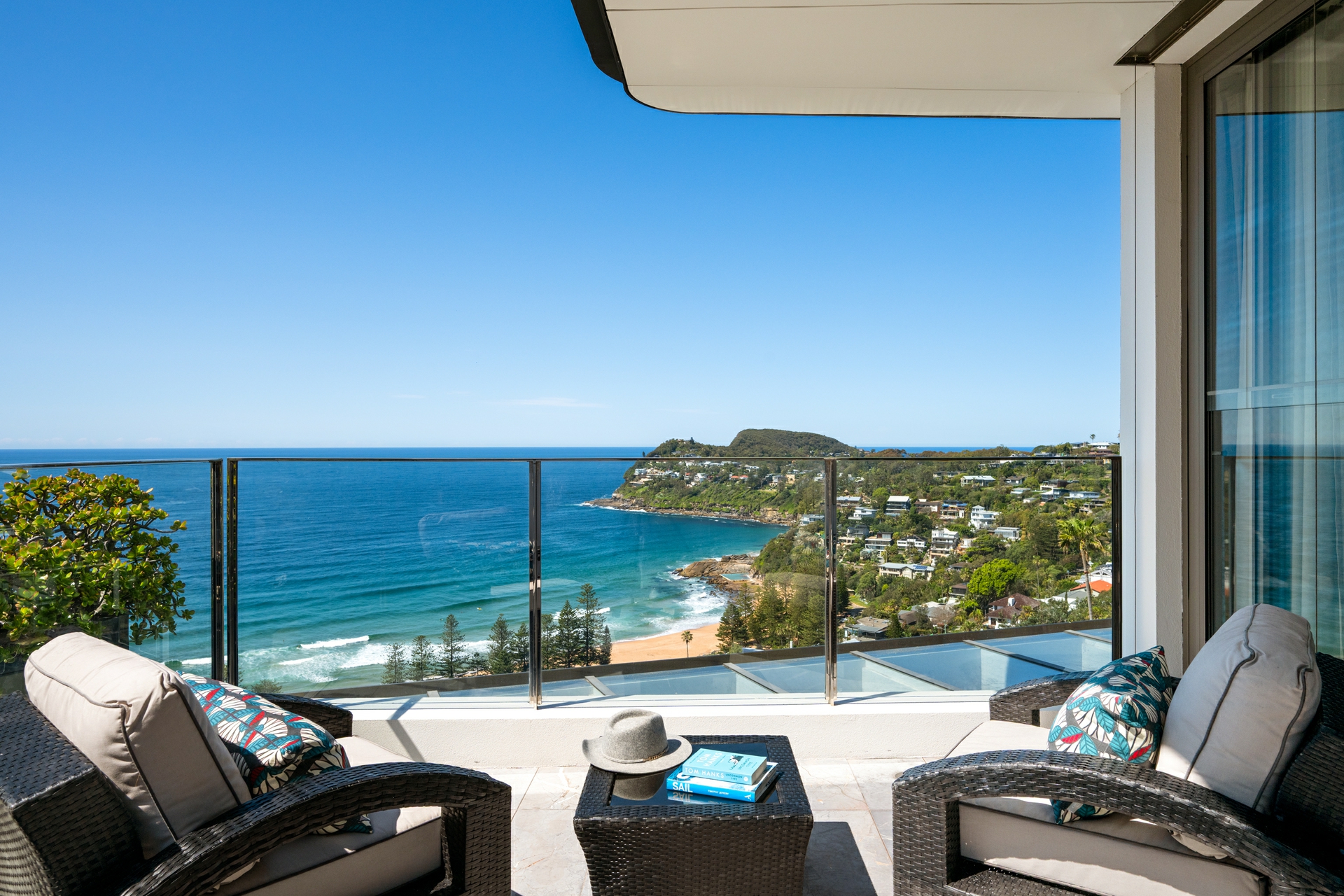 - Vast glass doors opening to a protected, north-facing courtyard with ocean outlook, built-in BBQ and fireplace for year-round entertaining