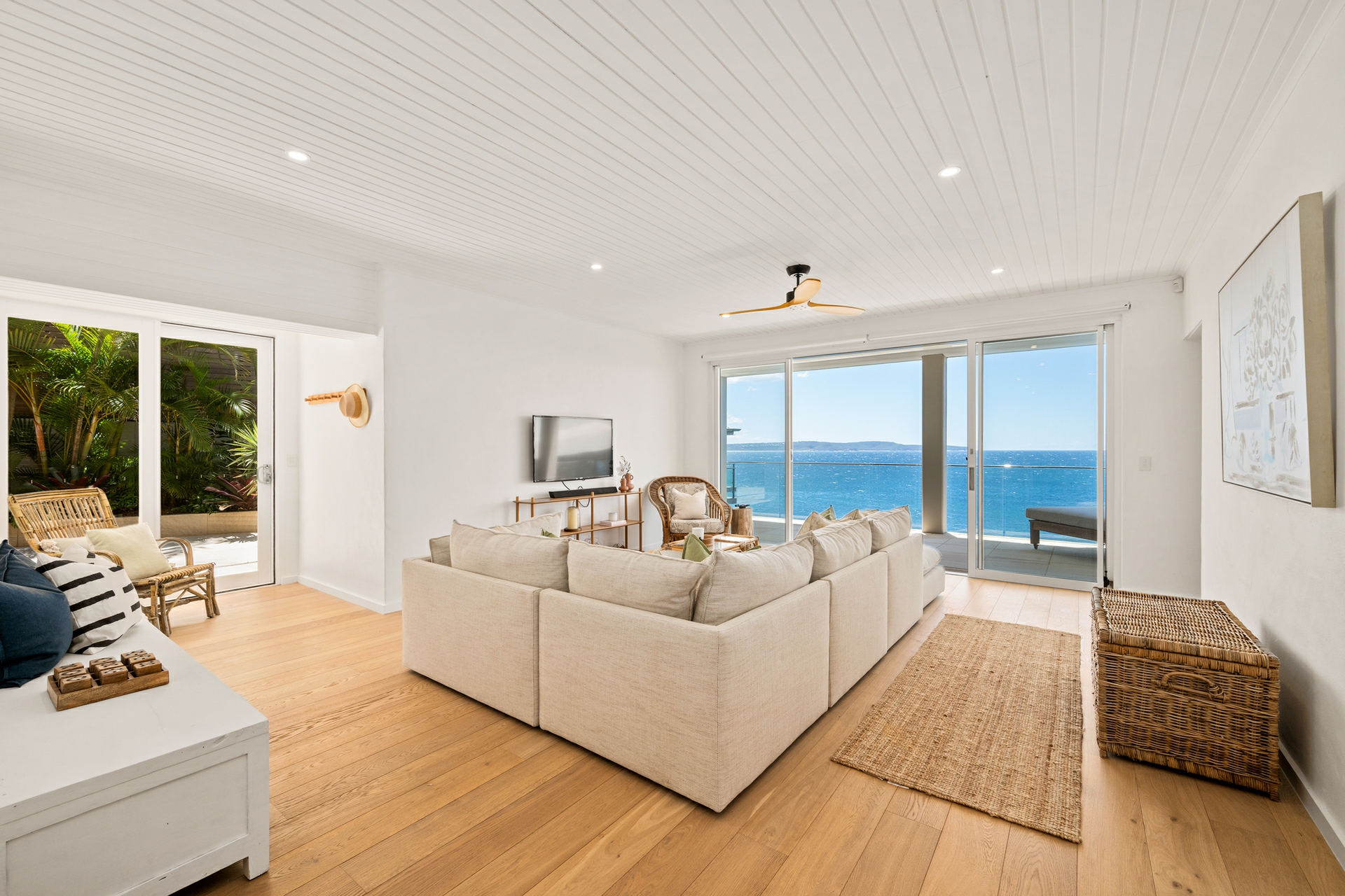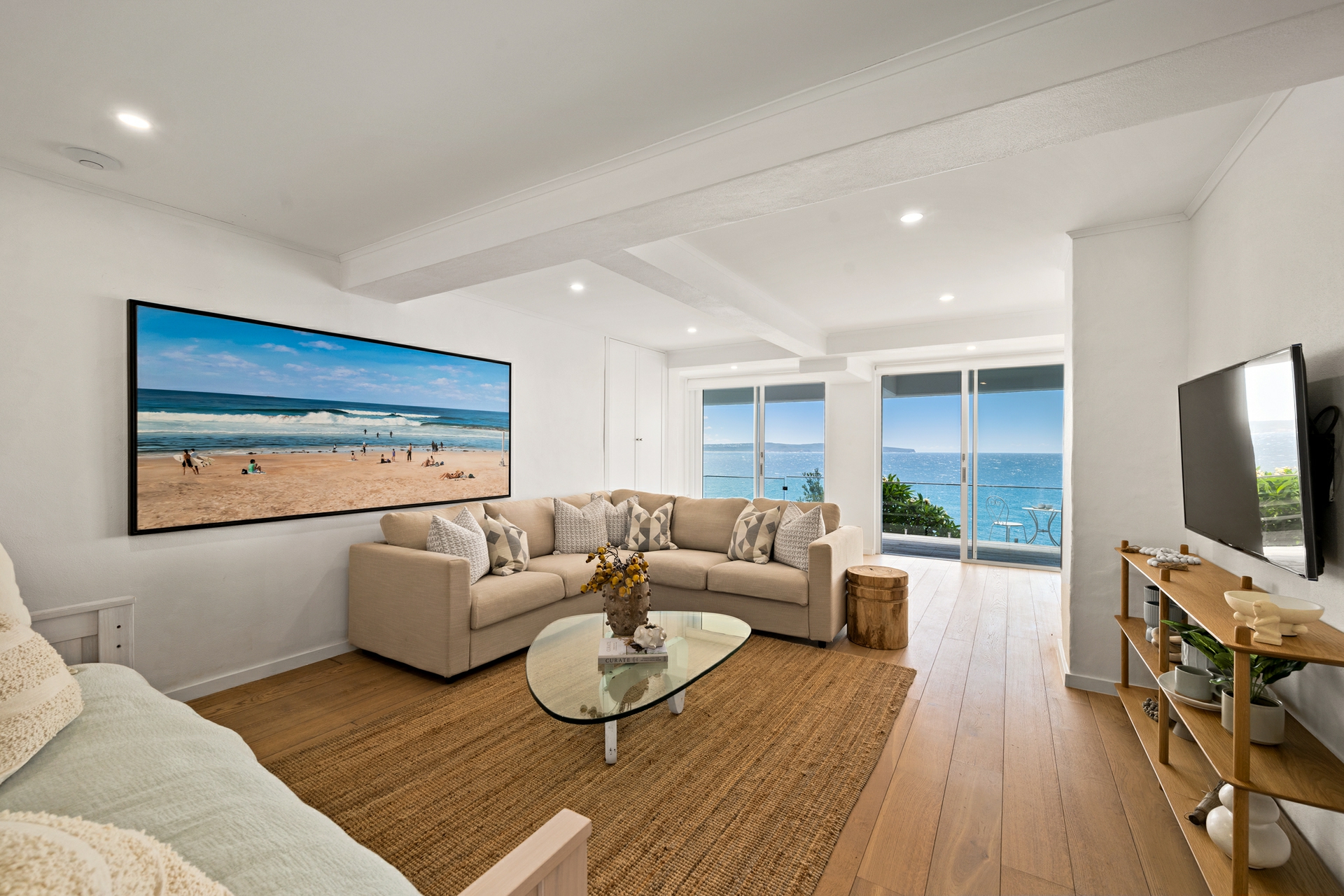 Perched above the endless blue of the Pacific, this contemporary tri-level home is calm, airy and timeless. A masterclass in understated elegance, crisp neutral tones meet natural textures to create a relaxed beachside ambience with a refined, premium edge.
