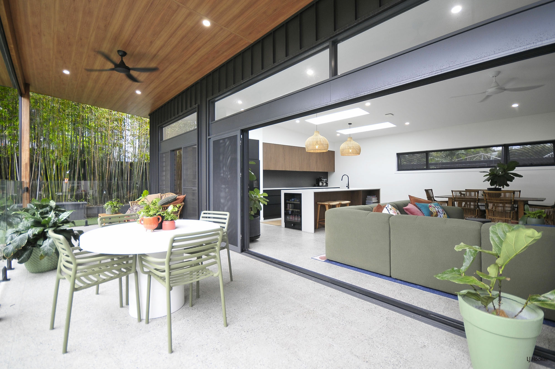 -Electric roll-down blinds to enclose and protect the outdoor entertaining space