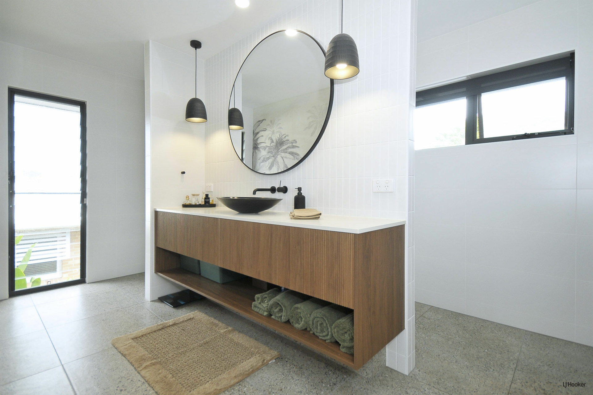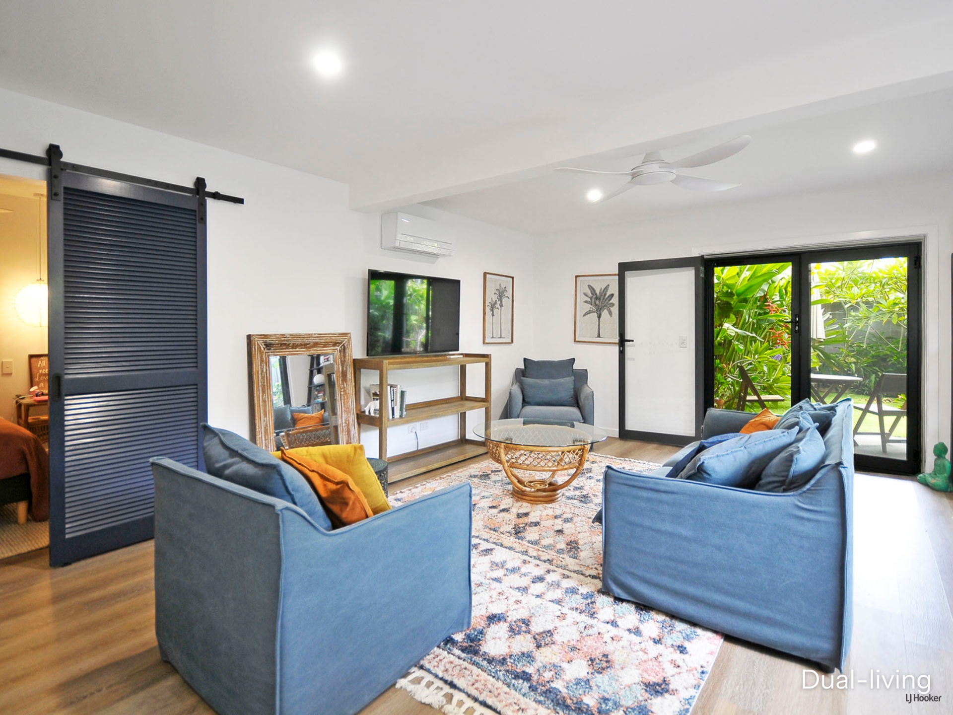 At the heart of the home, the expansive open-plan living and dining space is bathed in natural light and flows seamlessly to a covered outdoor entertaining terrace overlooking the sparkling pool and lush surrounds. Whether hosting sunset drinks with friends or enjoying slow mornings with coffee in hand, this tranquil outdoor setting delivers the ultimate coastal lifestyle.