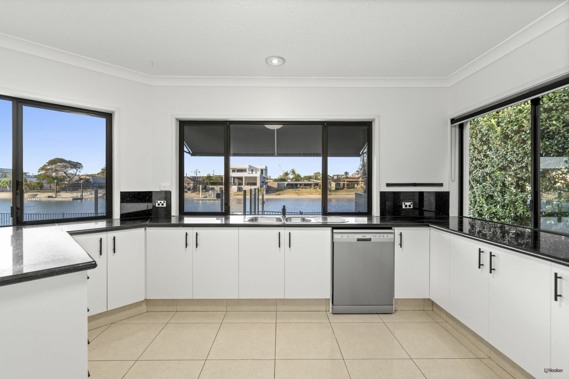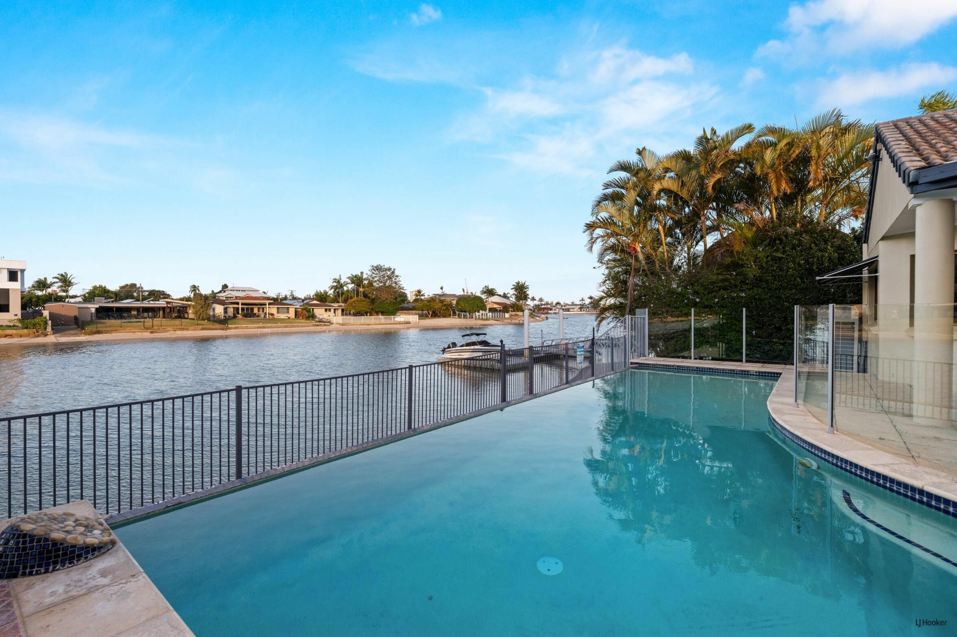 The avid chef will love the central gourmet kitchen overlooking the water. With sweeping stone benchtops, stainless-steel appliances, and tons of additional storage, you can prepare gourmet delights all awhile still feeling part of the action. With room for multiple cars off-street, the option to add a pontoon, a fully fenced yard perfect for pets and arguably some of the best water frontage Palm Beach has to offer, this is an opportunity not to be missed!