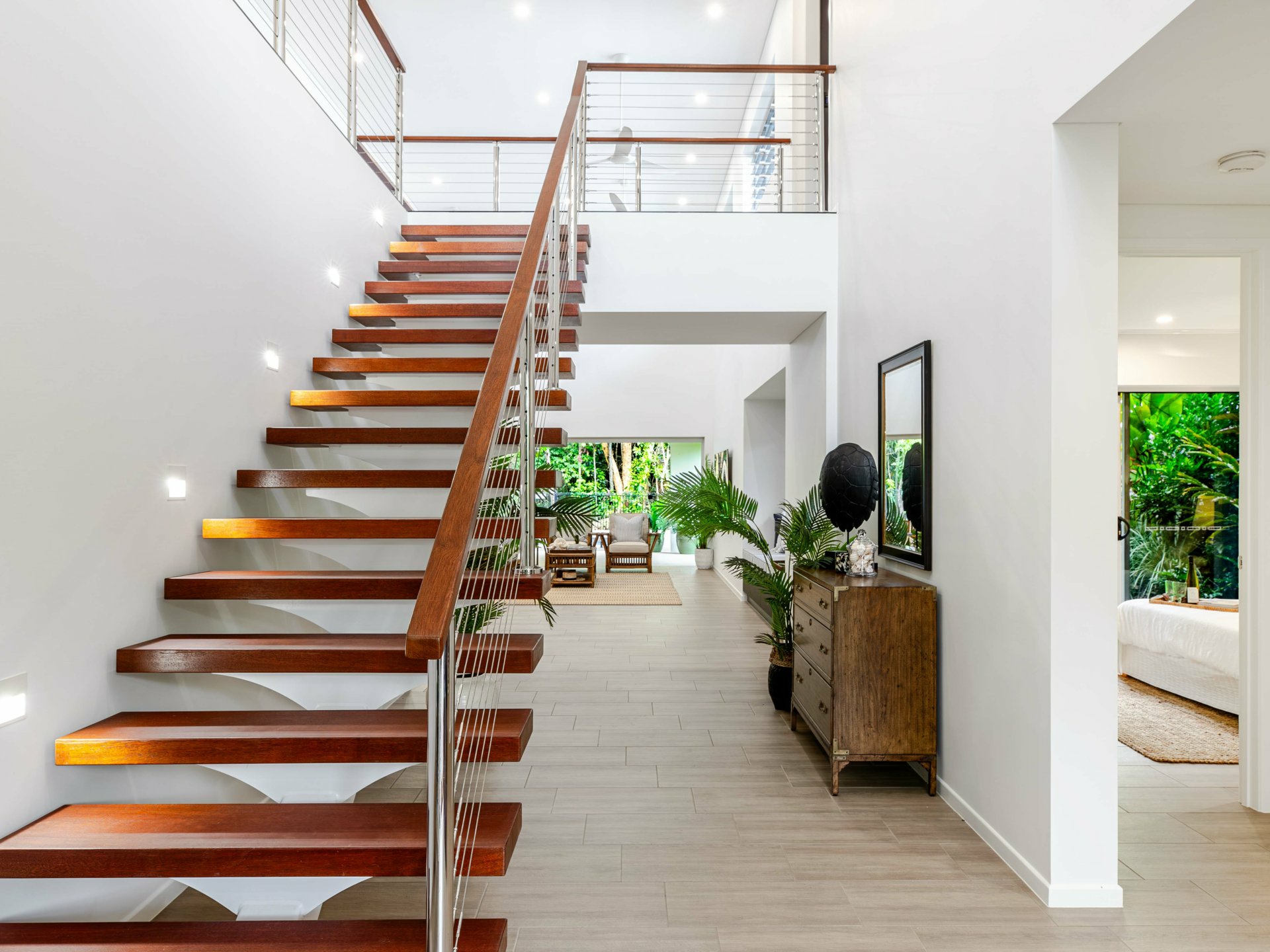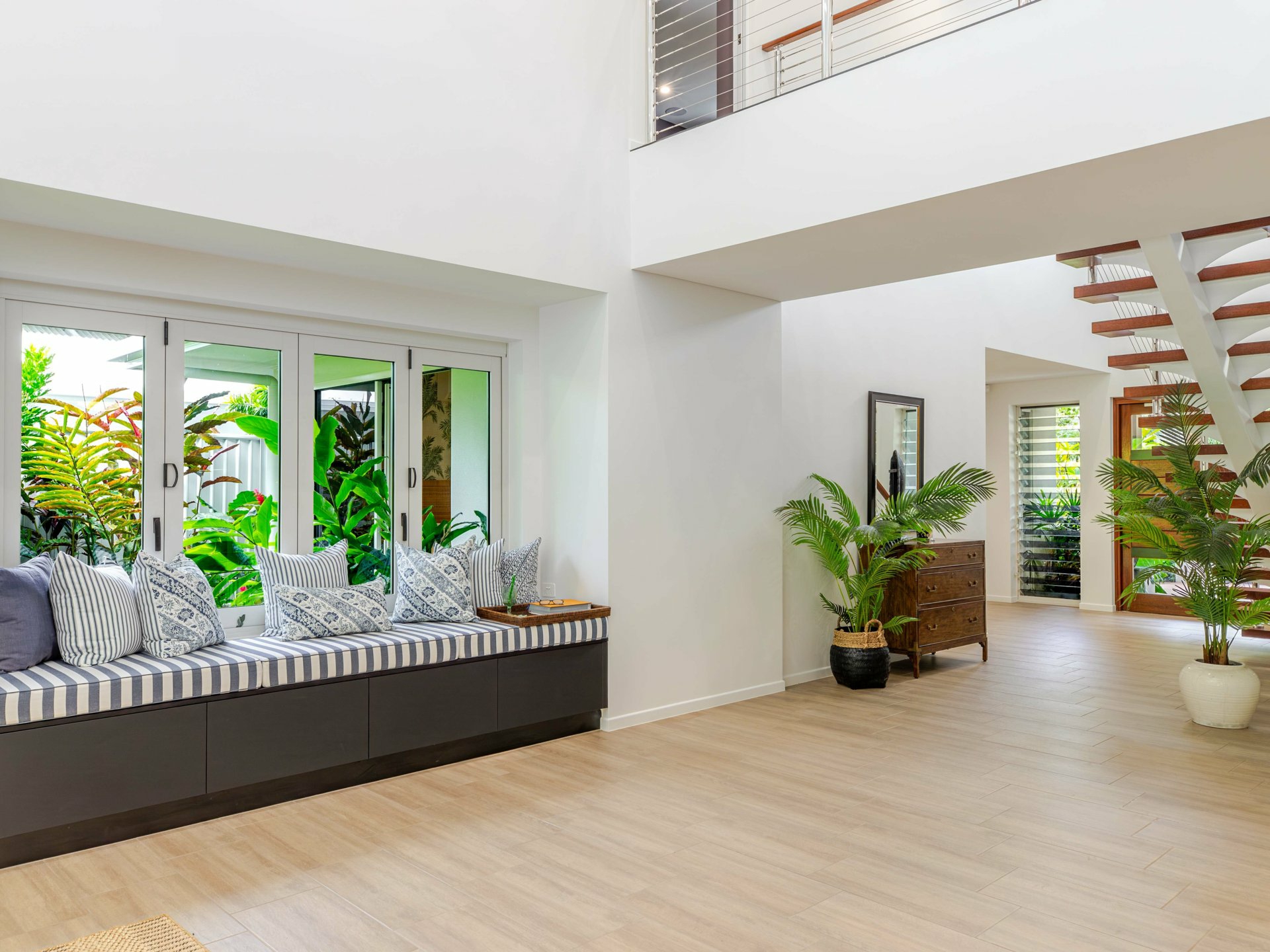 From its resort-style street appeal to the oversized single axis pivot entry door, soaring ceilings, luxurious fixtures and fittings, floating staircase and the selective use of quartz, timber, glass, stone, light and water, it’s no surprise that 295 Coral Coast Drive is a multi-award-winning home.