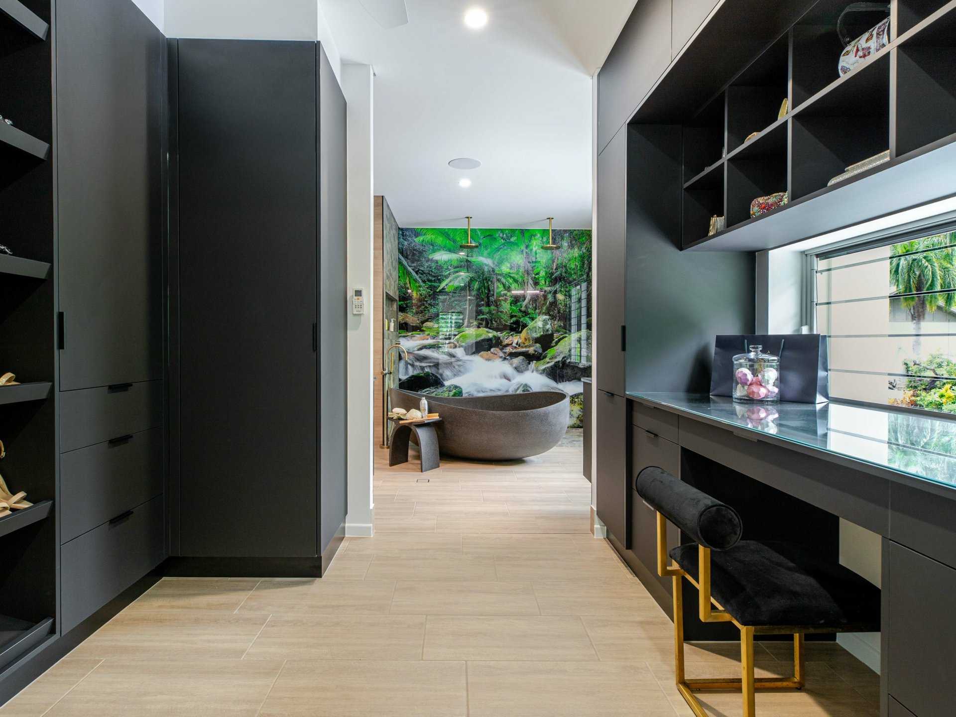 Upstairs, the master suite is positioned as a private sanctuary. Here, generous proportions, refined finishes, an expansive covered patio, opulent dressing room, and a resort-inspired ensuite with bespoke freestanding bath and twin rain showers combine to create an atmosphere of calm and indulgence.