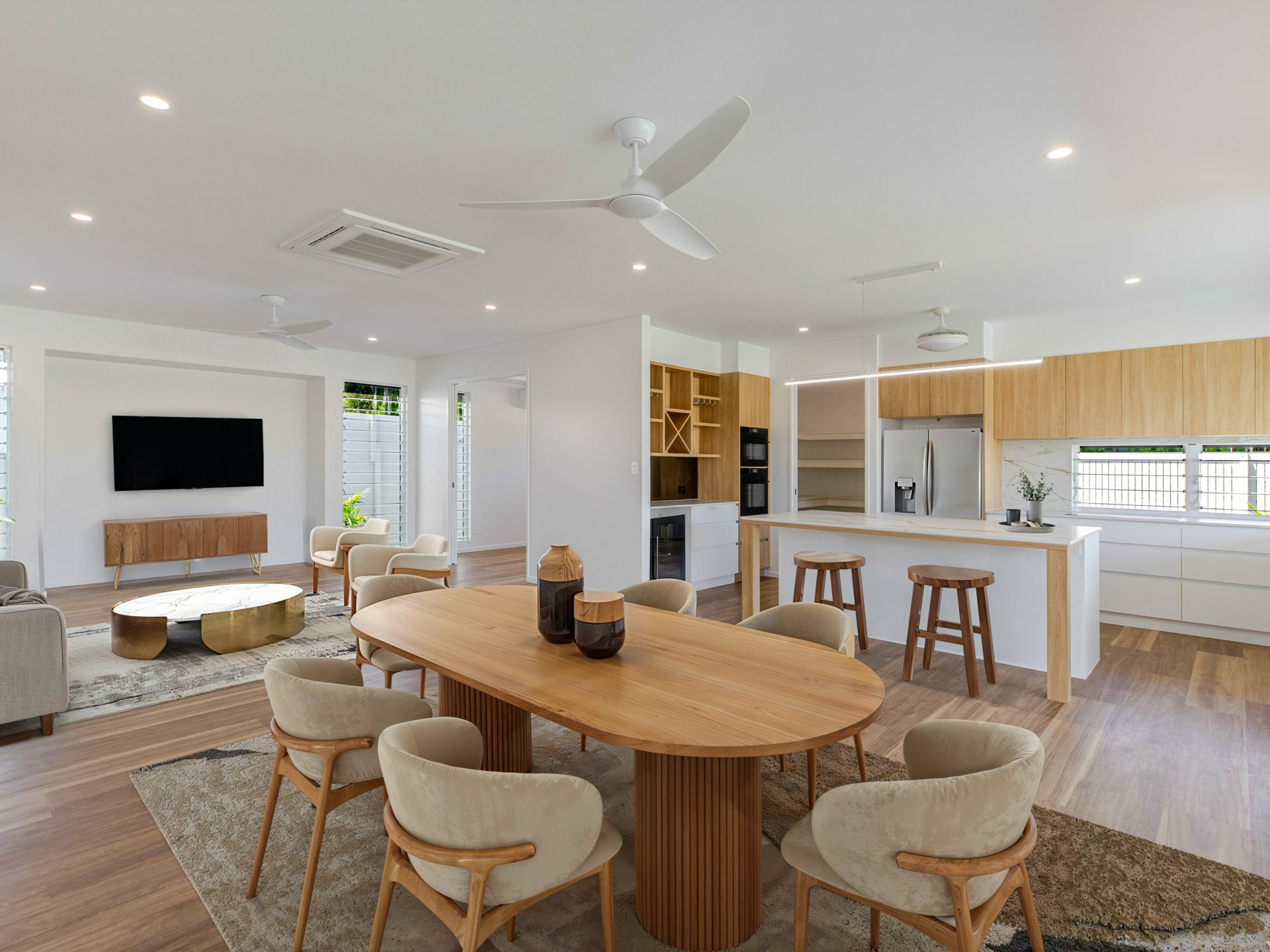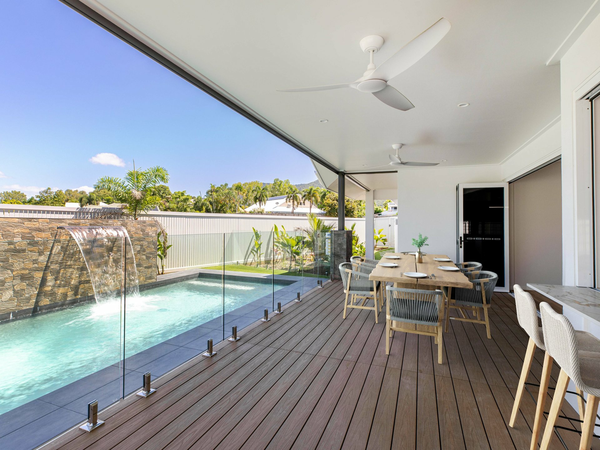 - Open plan kitchen, dining and lounge space with a full wall of bi-fold doors that retract to access the deep covered, Eko-decked alfresco area - the epitome of tropical living.