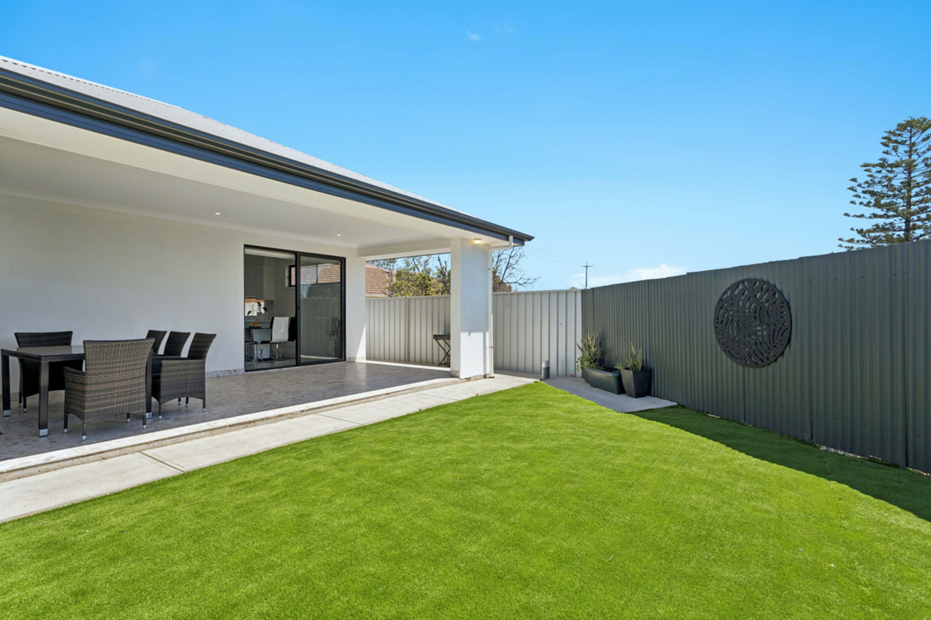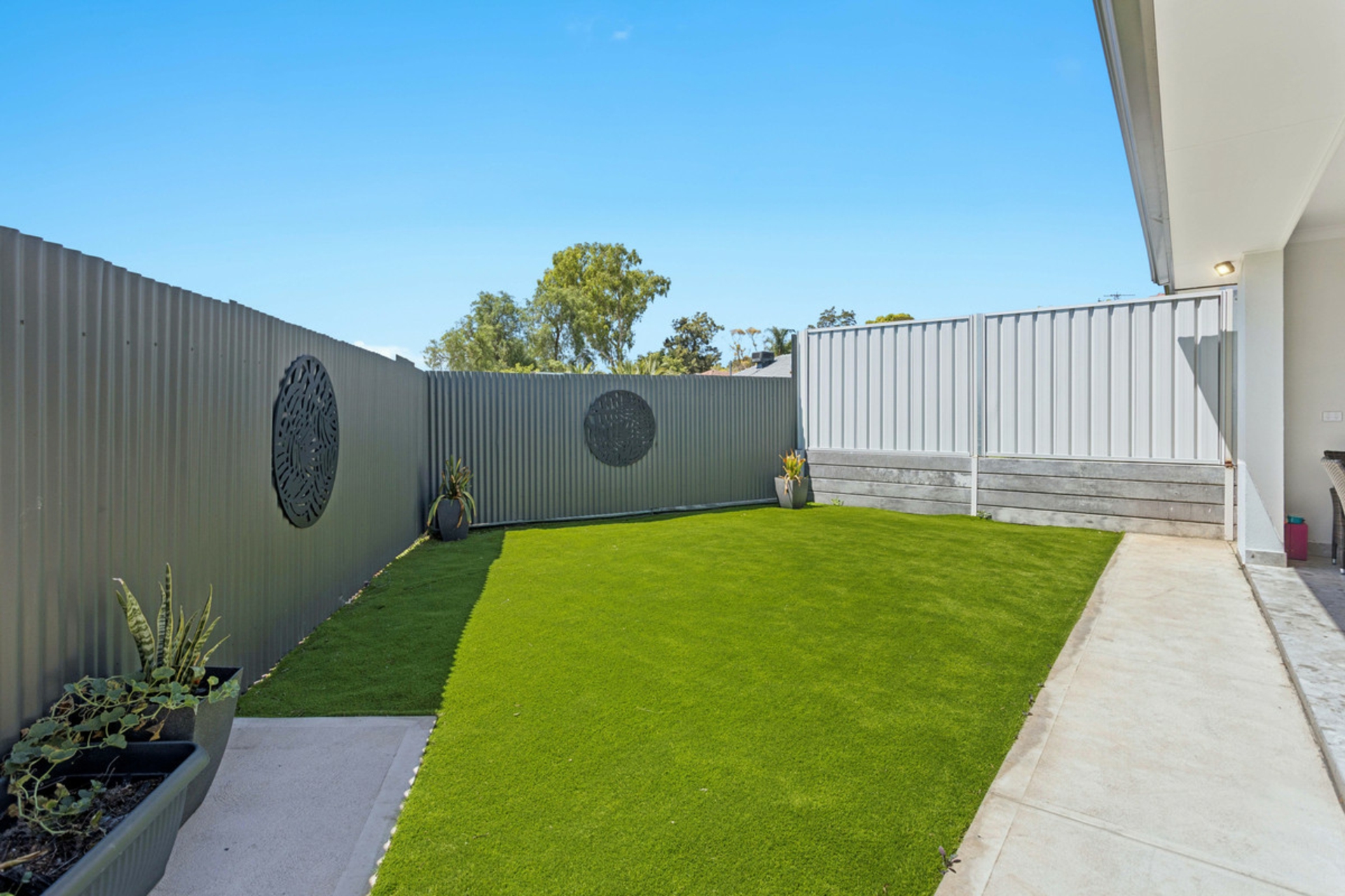 • Low maintenance synthetic rear lawn
