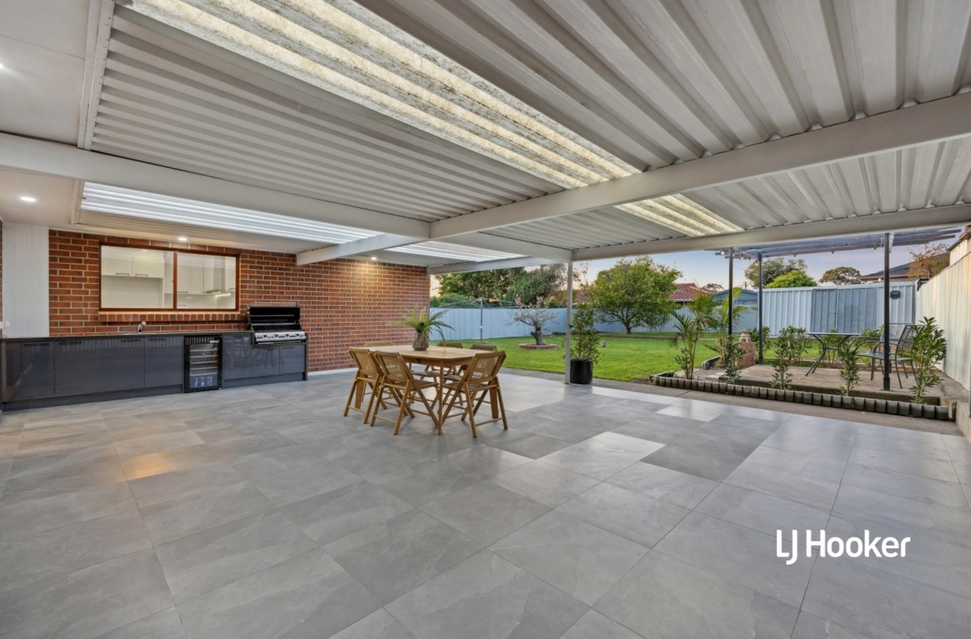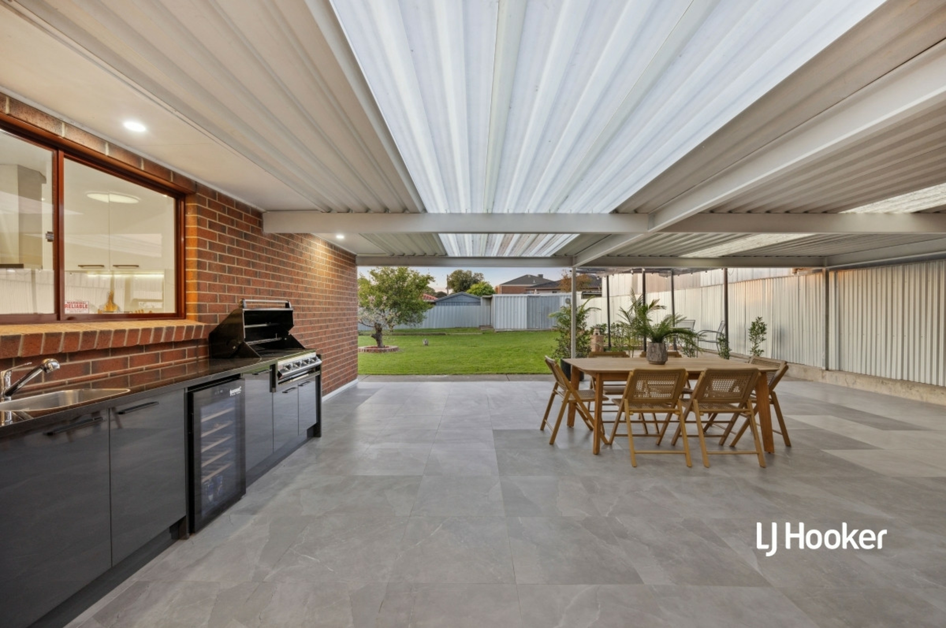 • Giant outdoor entertainment area, tiled verandah with an outdoor kitchen, stone benchtops, gas BBQ, sink, and fridge- perfect for hosting the family get-together!