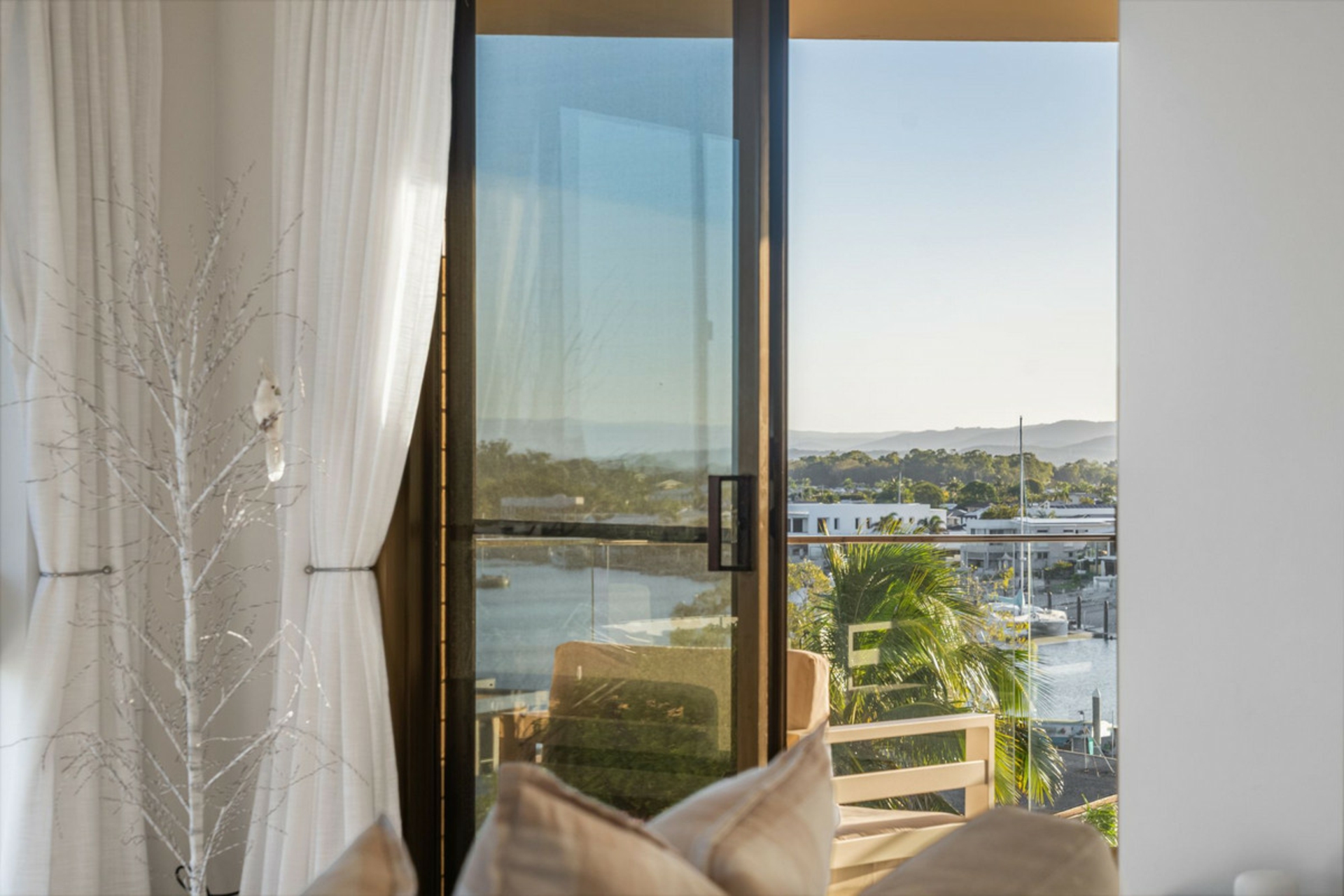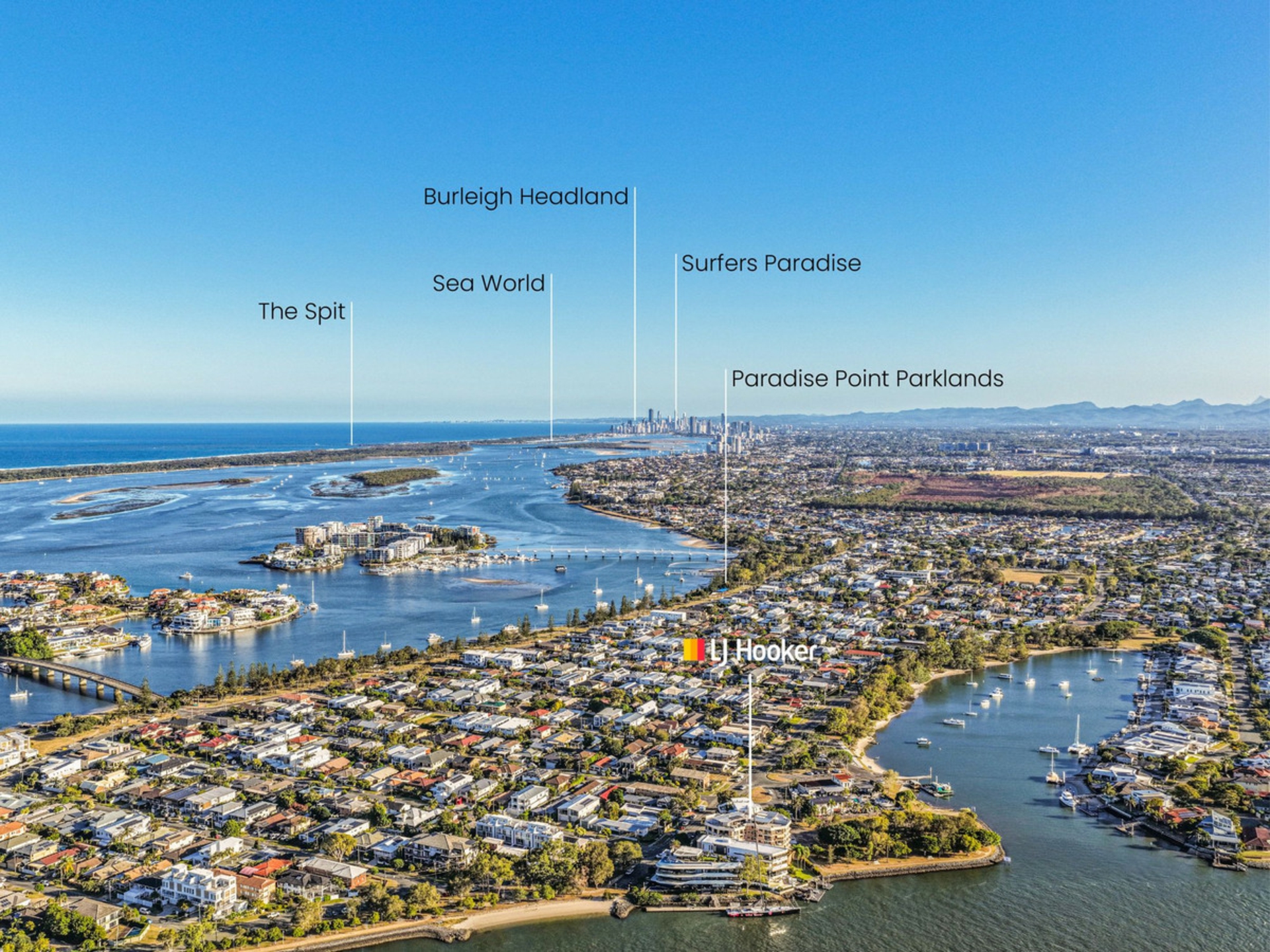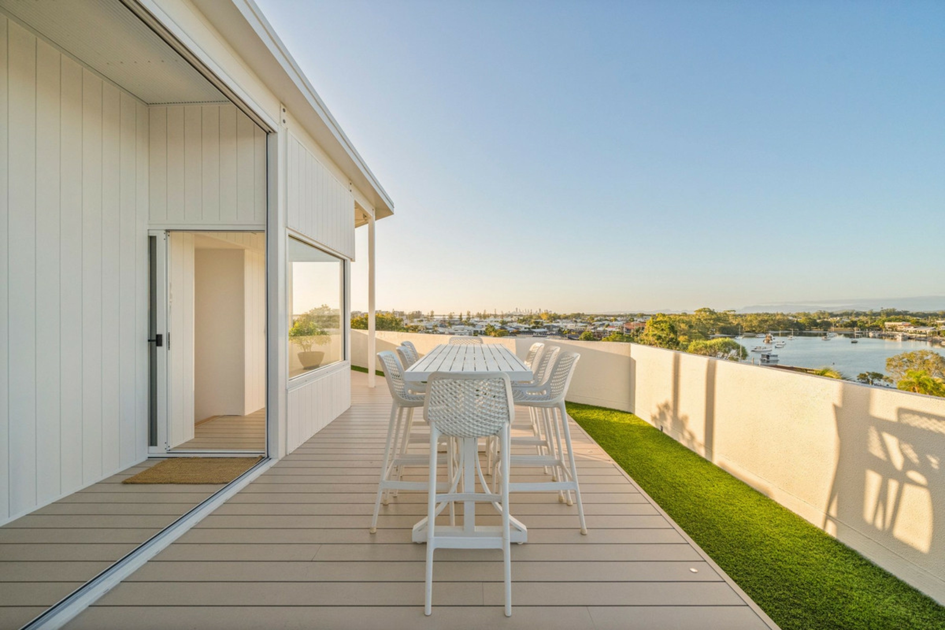 Unique - being the only one of its kind, unlike anything else... so says the Macquarie Dictionary - this penthouse apartment is just that - unique... 8 Paradise Parade, Paradise Point, a boutique waterfront building, is not surrounded by high rise towers, starving its neighbours of sunshine... here, the penthouse has spectacular 300 degree panoramic views spanning the Gold Coast skyline and waterways through to Mt Warning in the south, Mt Tamborine in the west and Tipplers to the north. With the intention of creating an entertainment space to inspire connection and invite outdoor living, the owners have developed a space which serves all weather and manages both intimate and expansive gatherings - a testament to the owners' elevated style and classic design. A butler's pantry, built-in BBQ and wine fridges add to the ease of entertaining here.