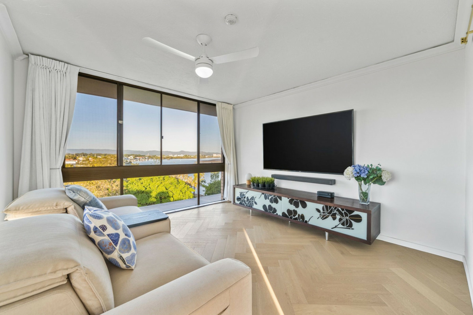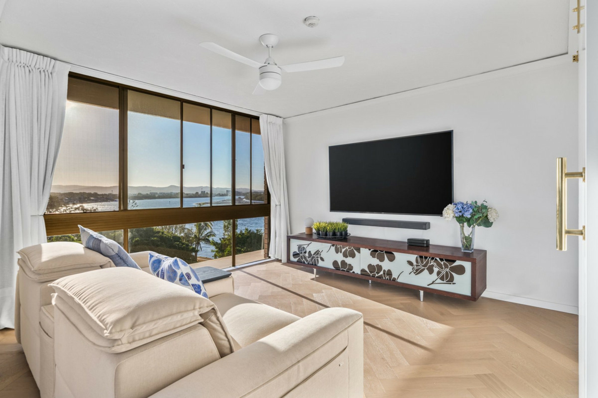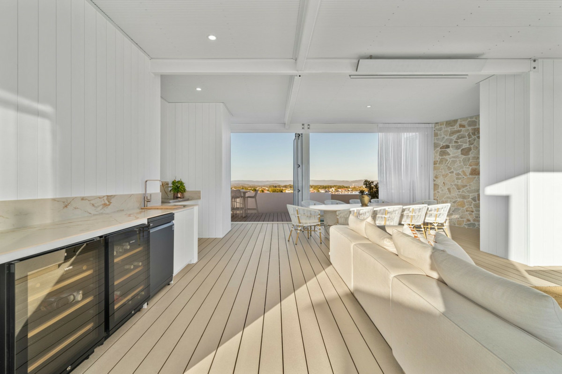 Unique - being the only one of its kind, unlike anything else... so says the Macquarie Dictionary - this penthouse apartment is just that - unique... 8 Paradise Parade, Paradise Point, a boutique waterfront building, is not surrounded by high rise towers, starving its neighbours of sunshine... here, the penthouse has spectacular 300 degree panoramic views spanning the Gold Coast skyline and waterways through to Mt Warning in the south, Mt Tamborine in the west and Tipplers to the north. With the intention of creating an entertainment space to inspire connection and invite outdoor living, the owners have developed a space which serves all weather and manages both intimate and expansive gatherings - a testament to the owners' elevated style and classic design. A butler's pantry, built-in BBQ and wine fridges add to the ease of entertaining here.