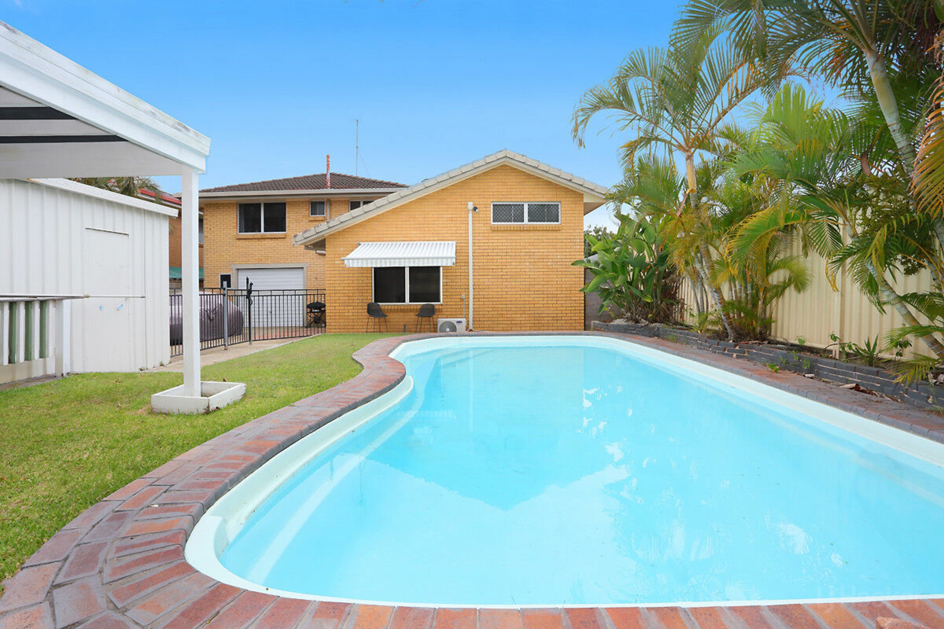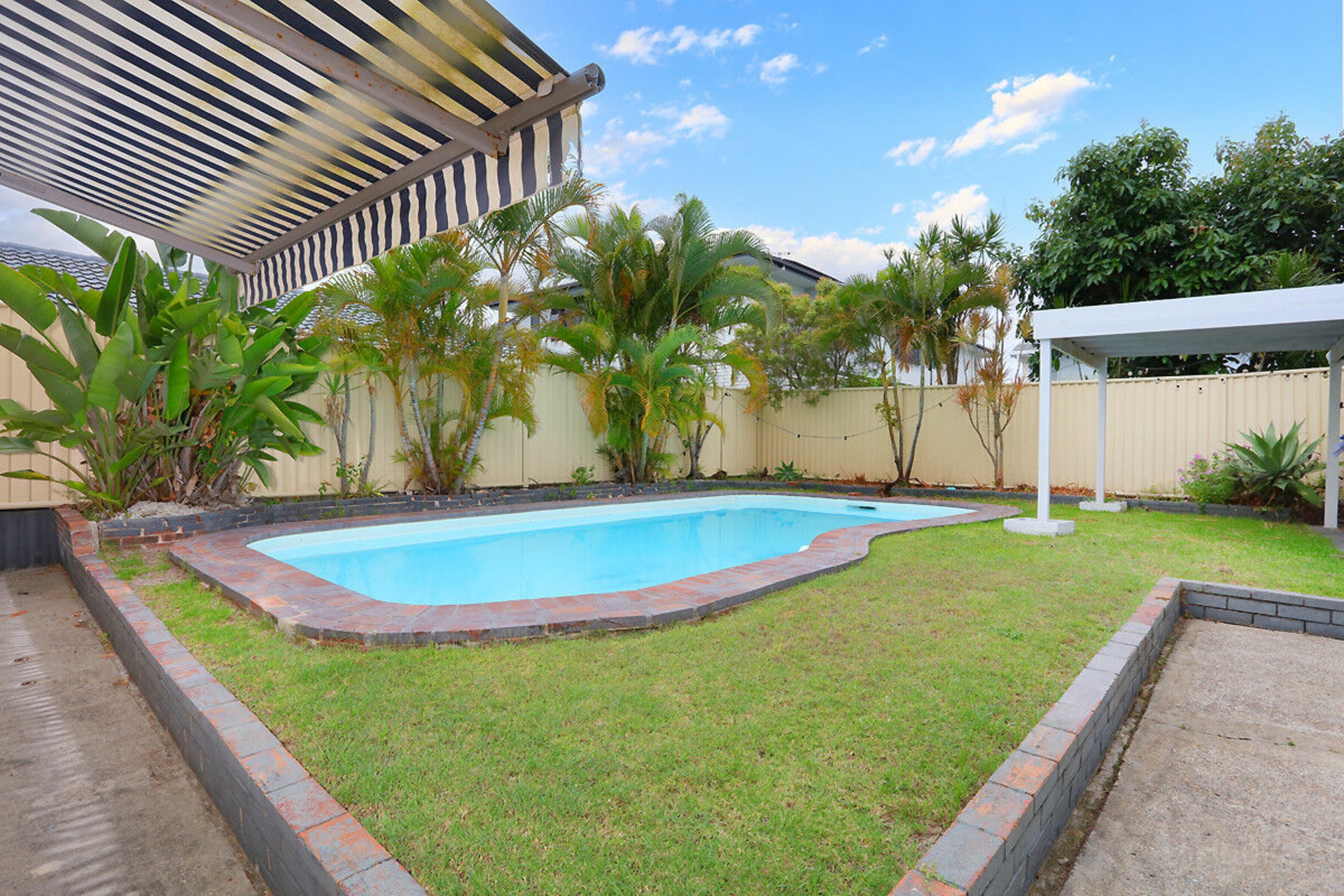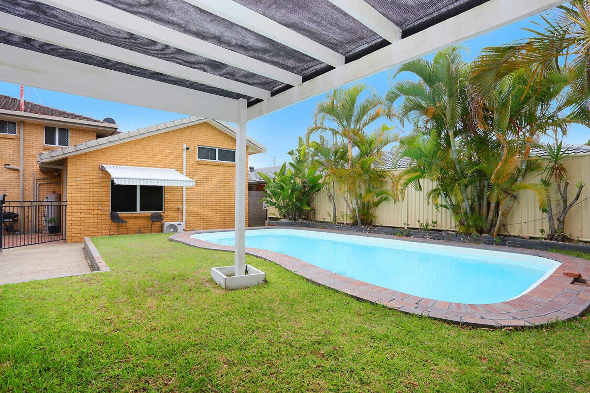 Resort-style fiberglass swimming pool with undercover alfresco area-perfect for entertaining
