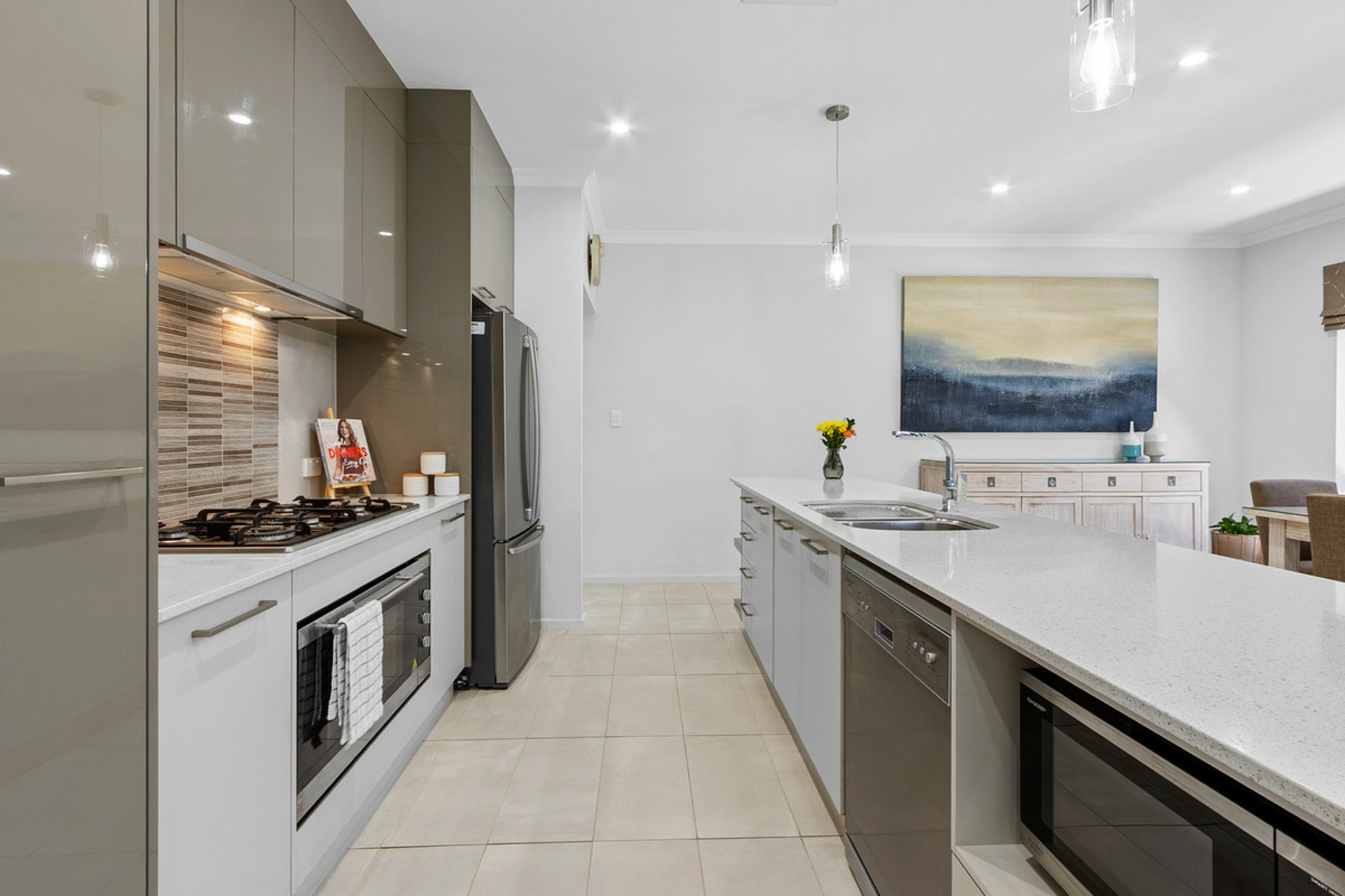 • Kitchen complete with stainless steel appliances, stone benchtops, gas cooktop and ample cabinetry and bench space.