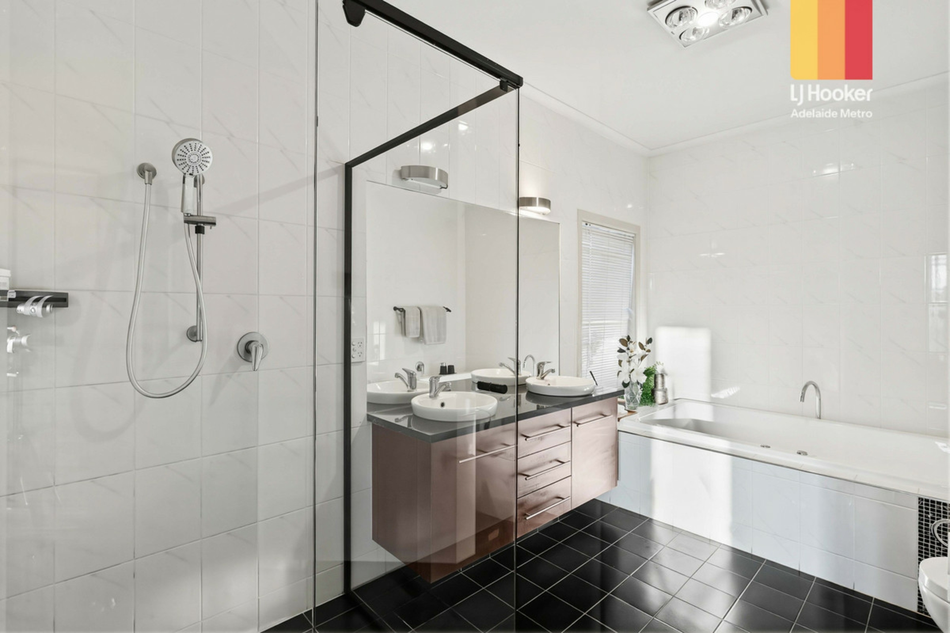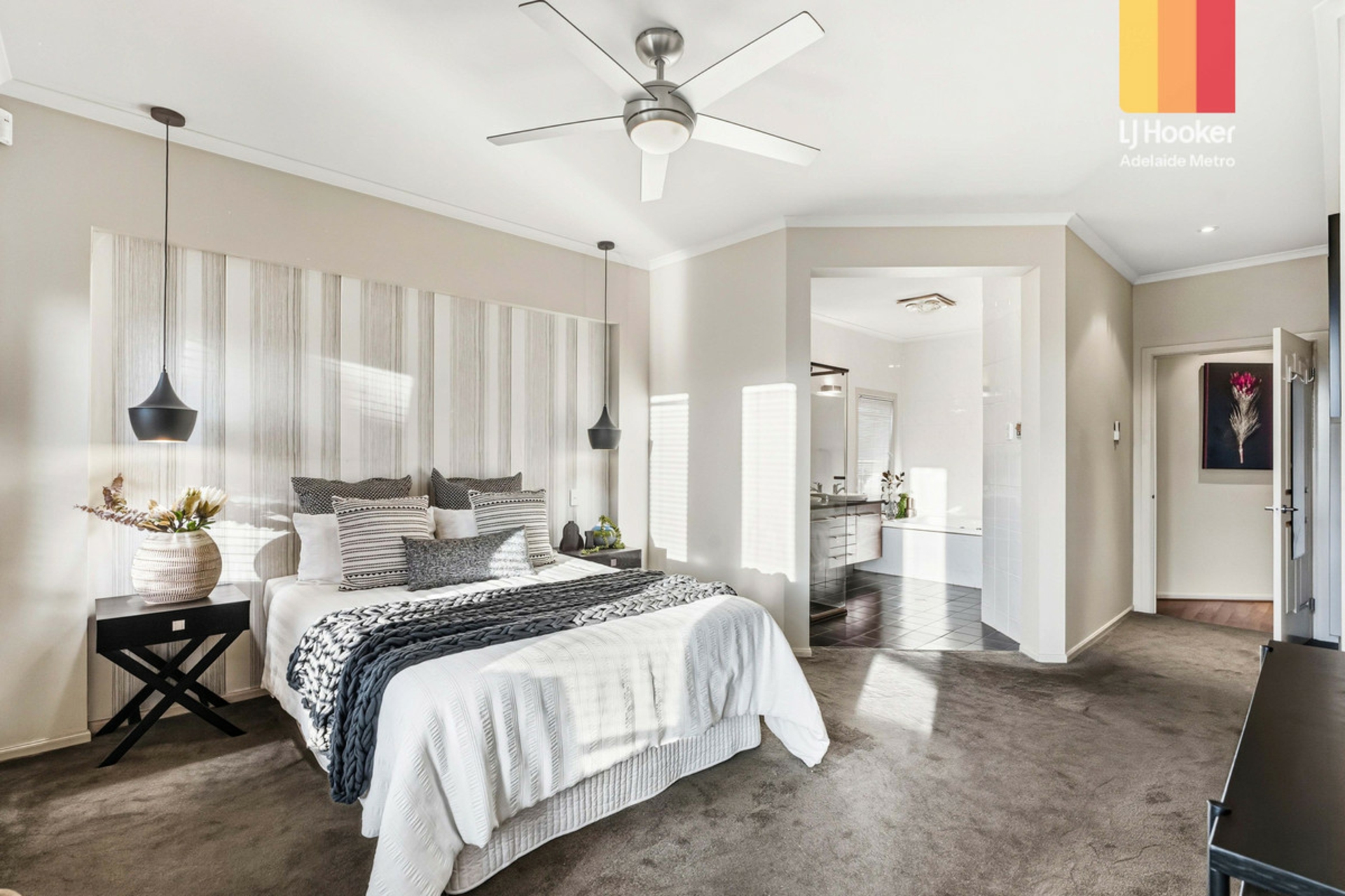 The master suite offers a walk-in robe and luxurious ensuite with double vanity, bath, shower and separate toilet, while the remaining three bedrooms have built-in robes and easy access to the main bathroom.