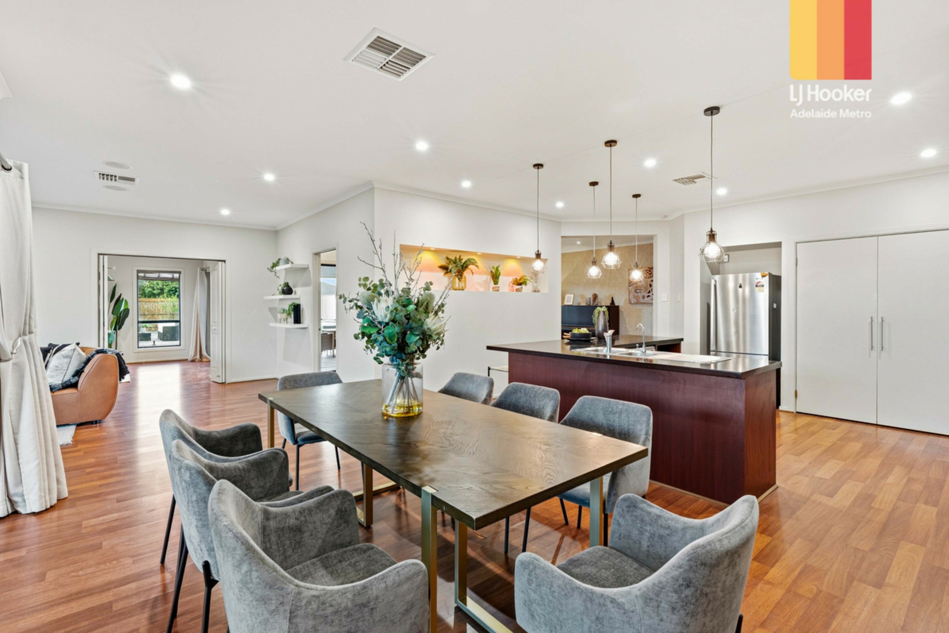 Step inside to a modern, light filled interior with LED downlighting, stylish light fittings and neutral tones that create a warm, inviting ambiance. The open plan design features a study, rumpus room and a chef's kitchen with gas cooktop, oven, dishwasher, double sink with Pura tap, L-shaped breakfast bar, ample storage and pantry.
