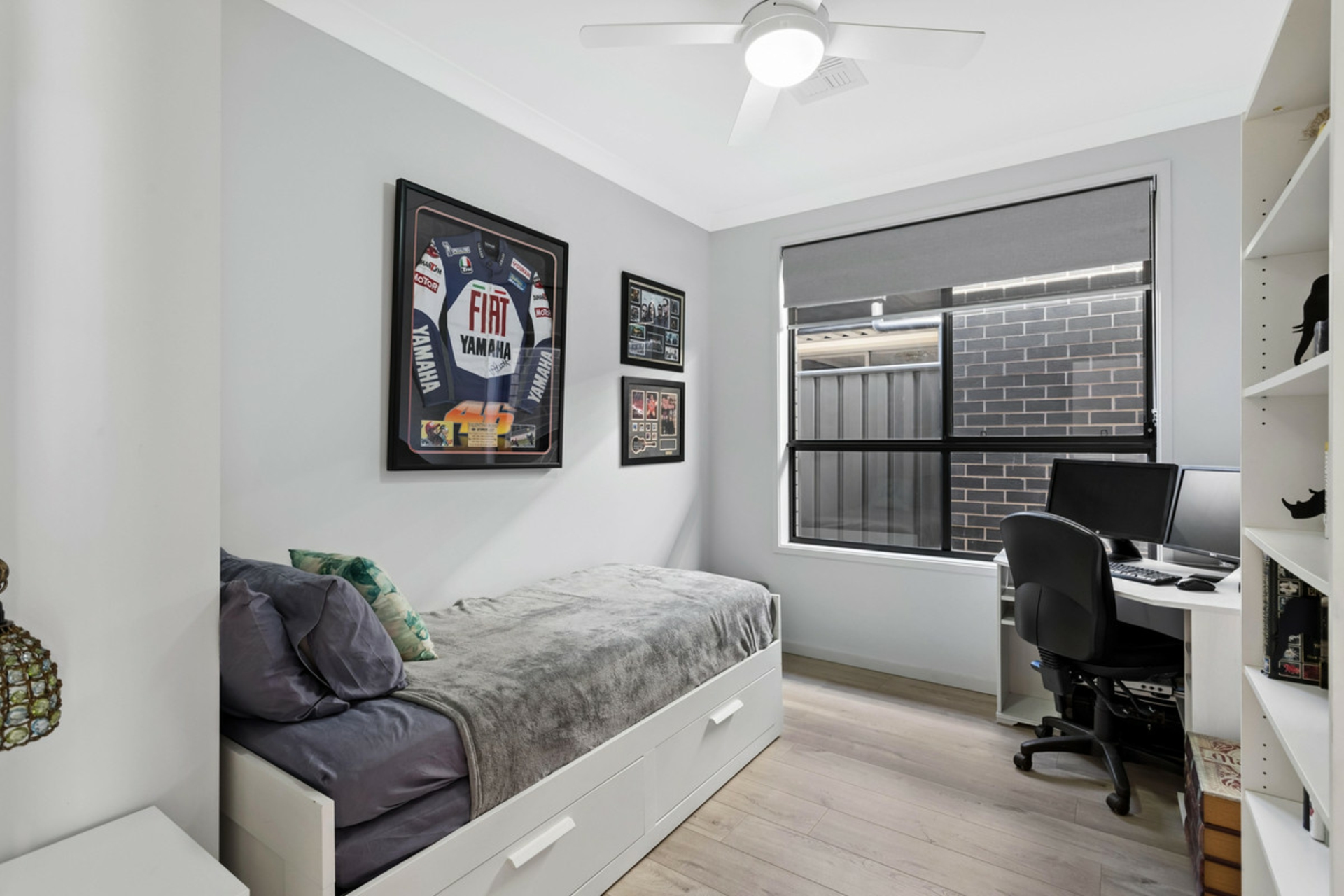 • Bedroom three equipped with a ceiling fan and roller shutters for added comfort and privacy