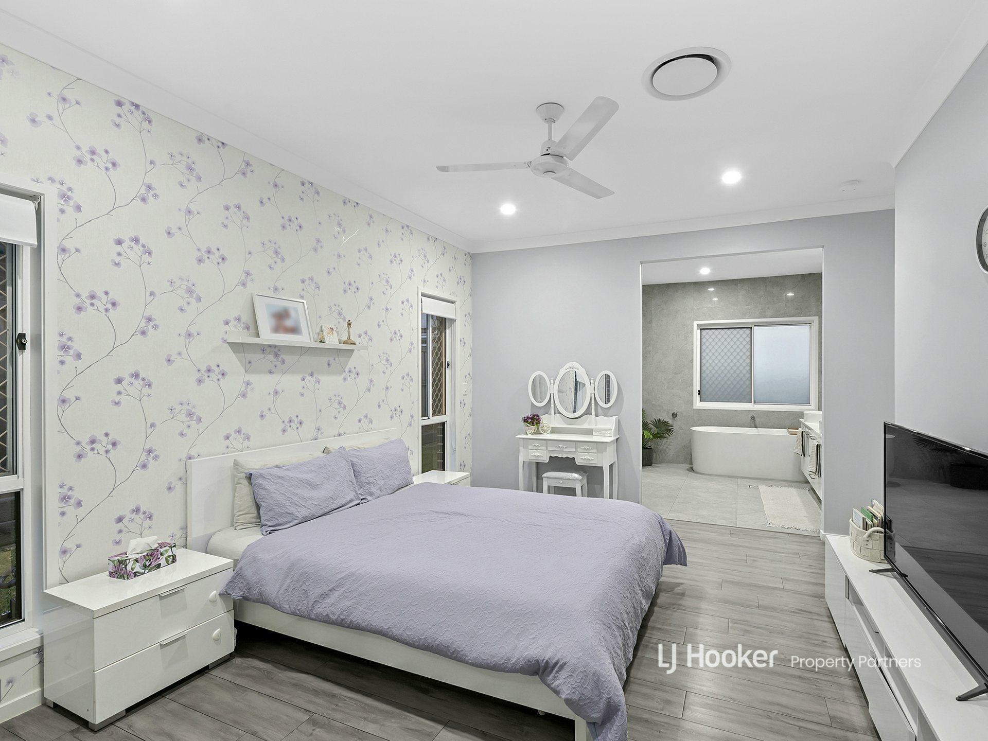 - Master has WIR, patio access + ensuite with twin vanity, freestanding tub & shower
