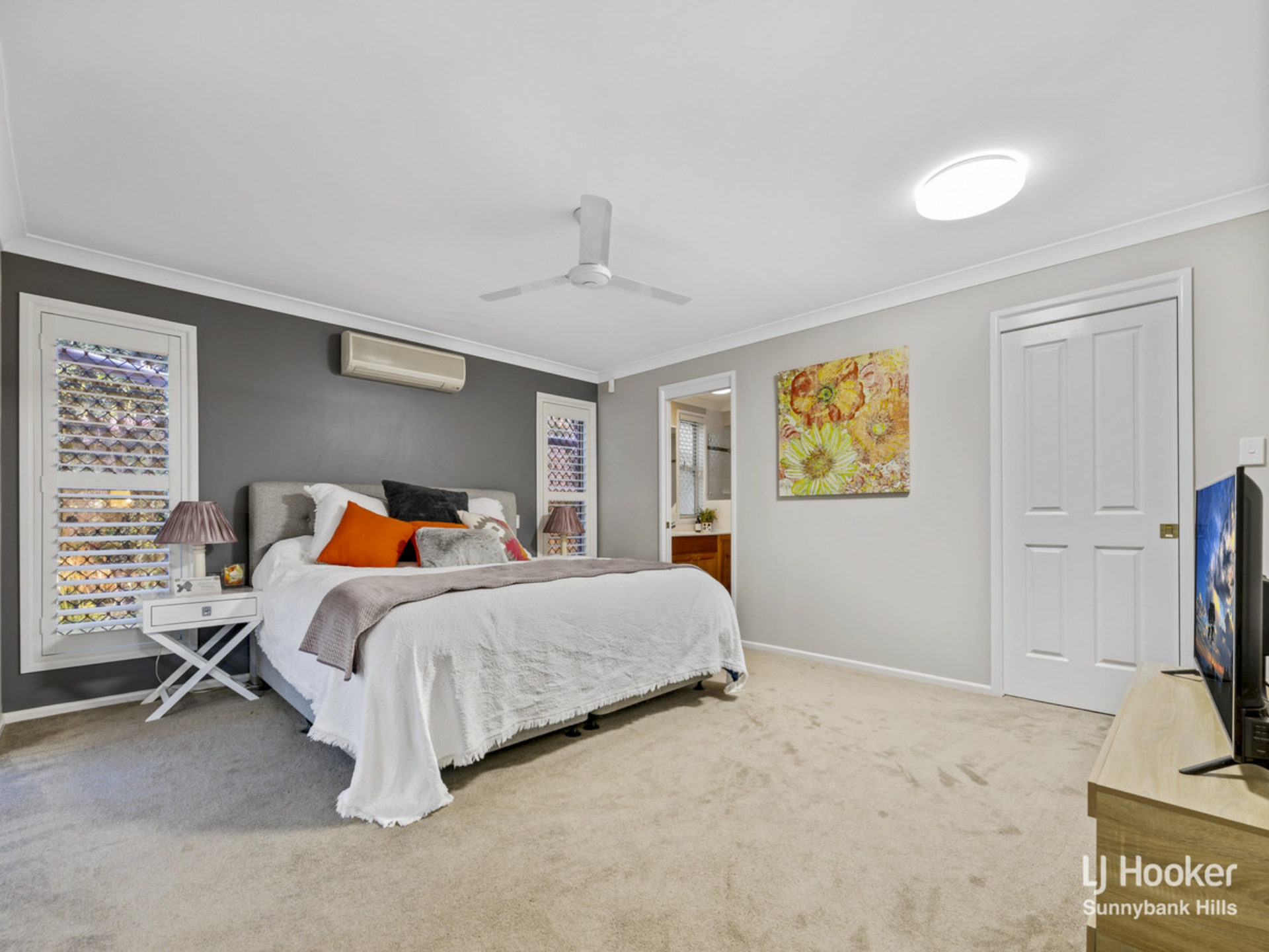 This home also features four incredibly spacious bedrooms fitted with plush carpets, all including extra large built-in wardrobes, ceiling fans and stylish decor. The vast Master bedroom with modern plantation shutter includes an ensuite, A/C and a walk-in robe.