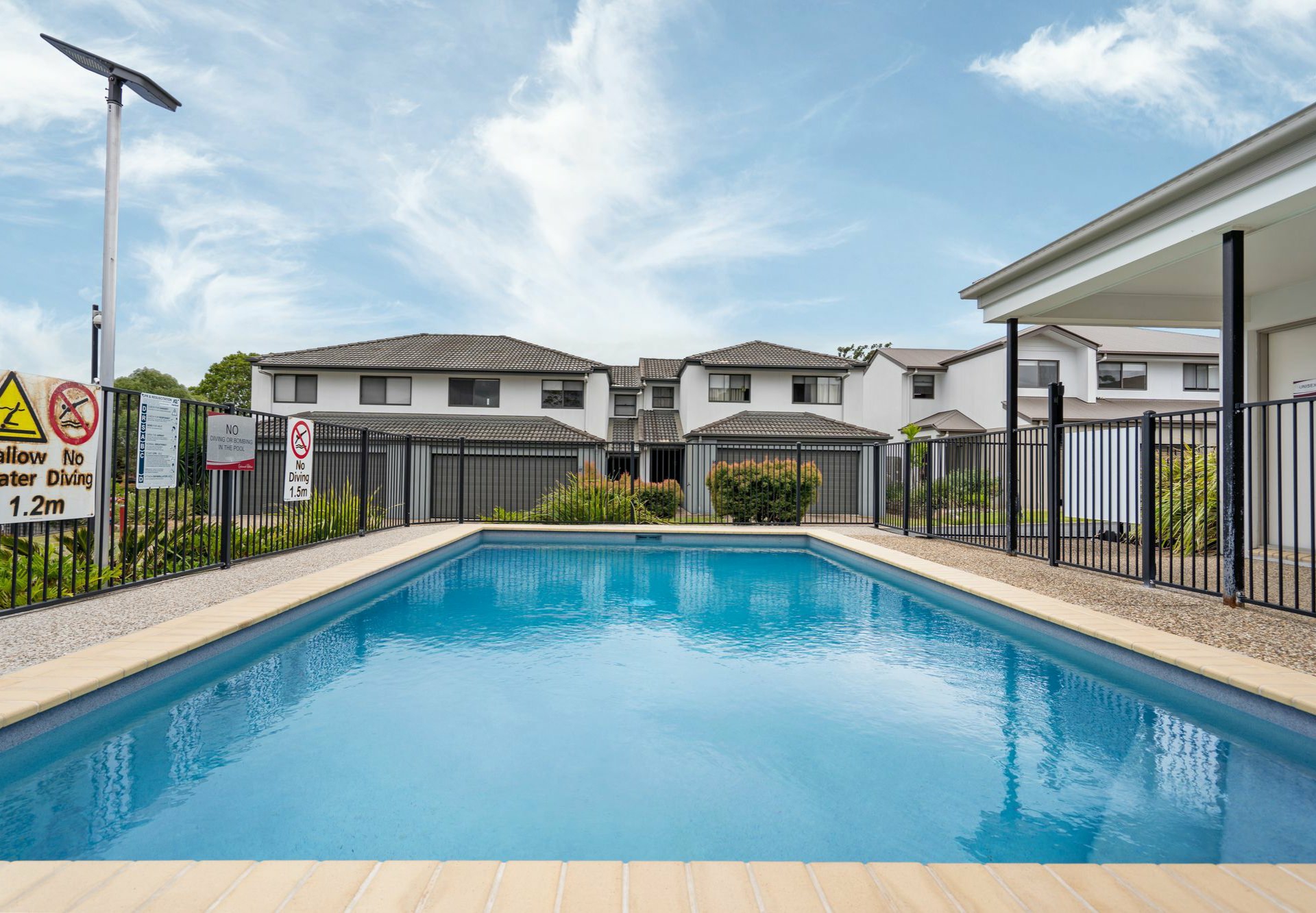 - Practical comforts including single garage, driveway parking, split-system air conditioning, and sparkling in-ground pool for residents