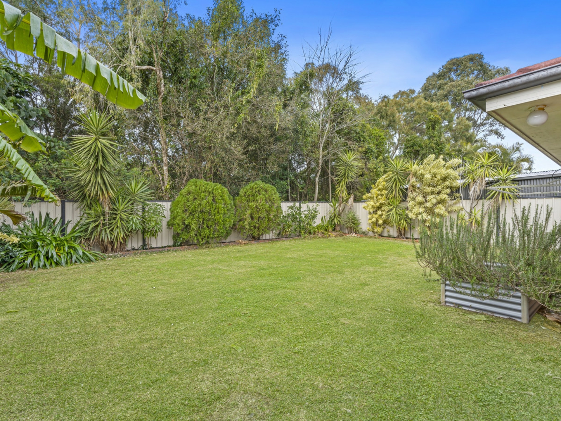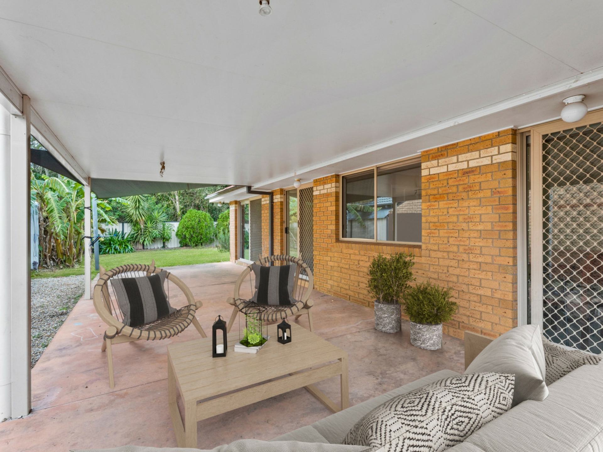 - Outdoor entertaining area overlooking the private backyard and parkland