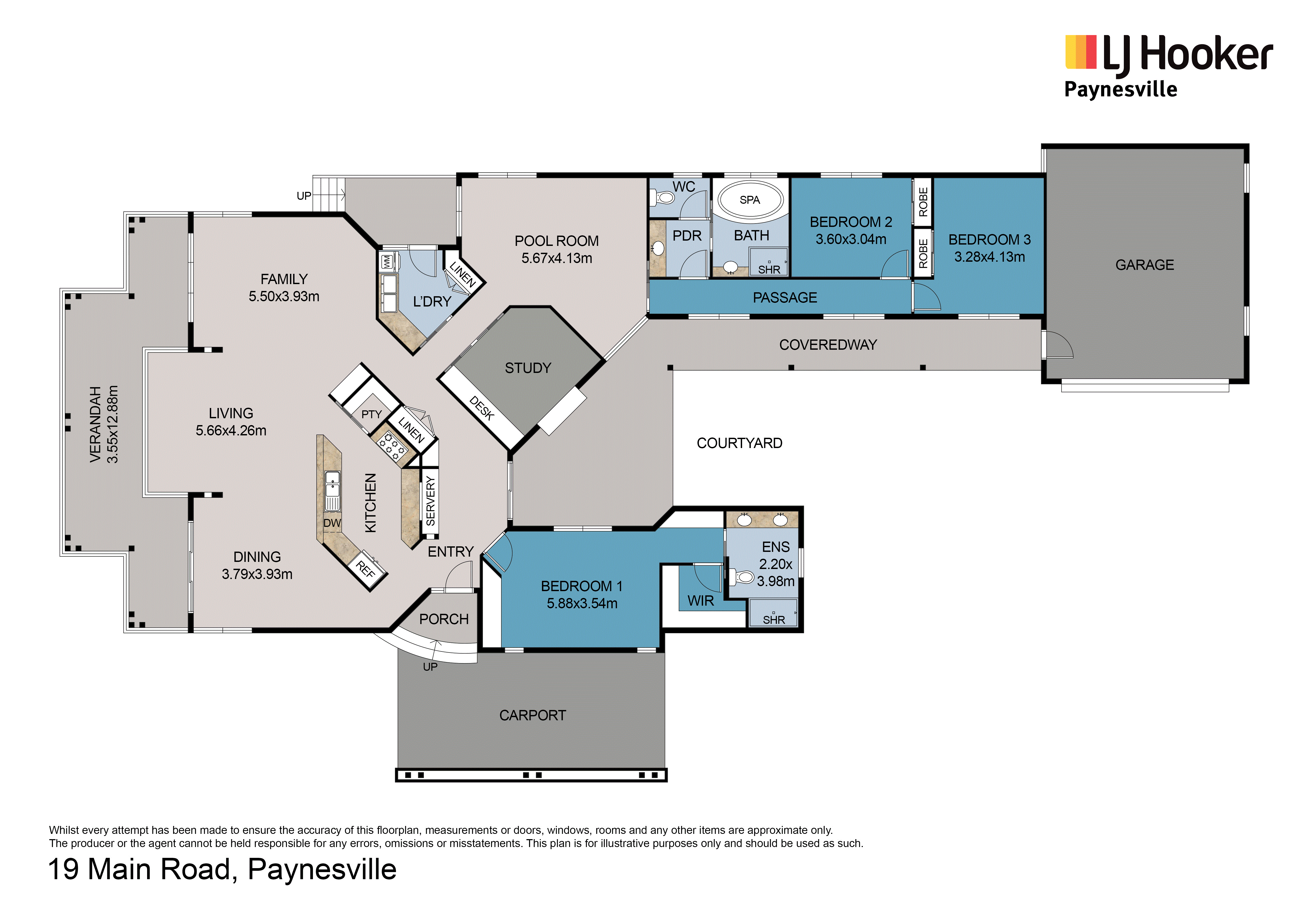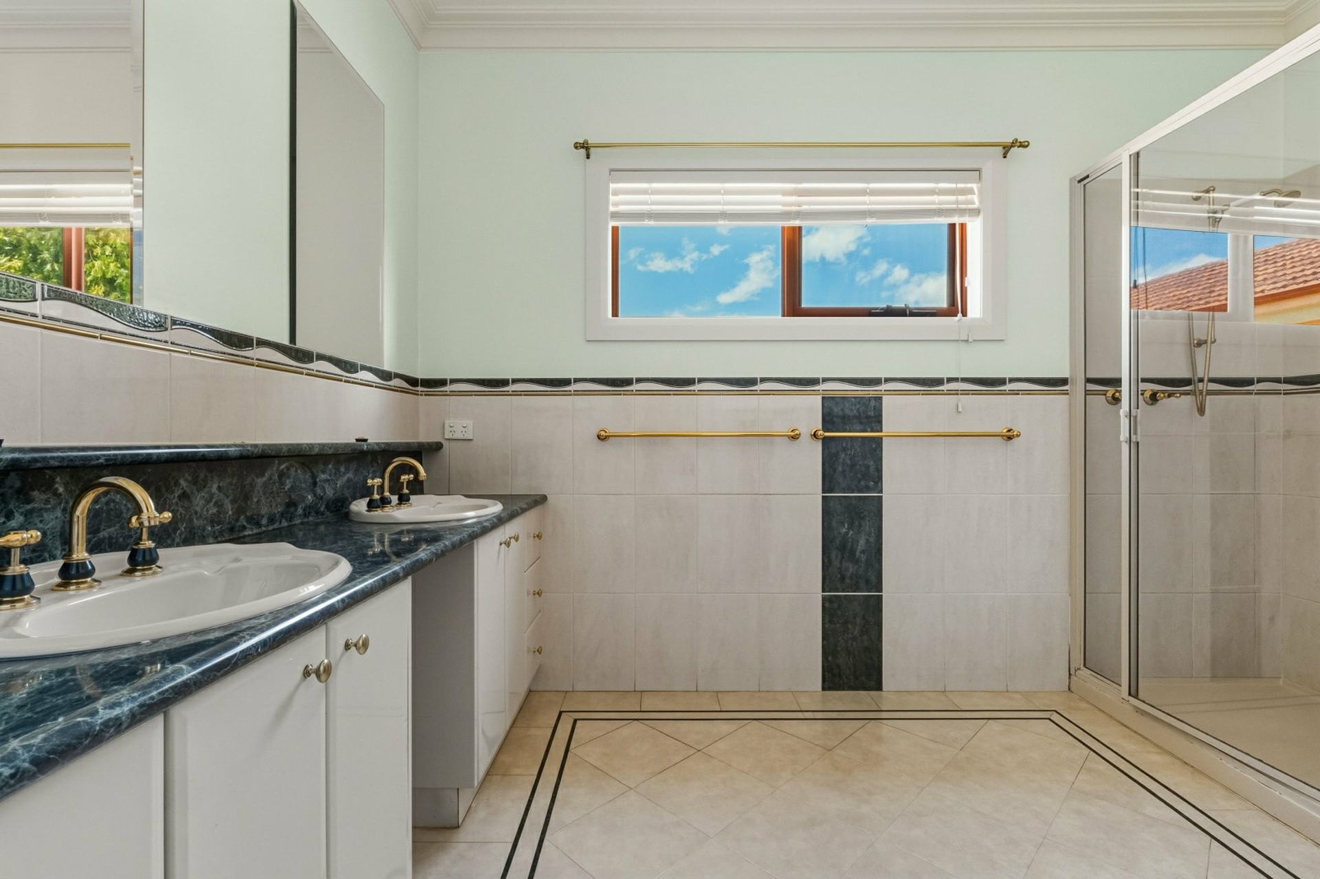 Master suite with built-in robe, walk-in robe and ensuite featuring a twin basin vanity and oversized shower. Two additional bedrooms serviced by a central bathroom with a spa, shower and separate powder room and toilet. Also study with a built-in desk, ideal for work or hobbies.
