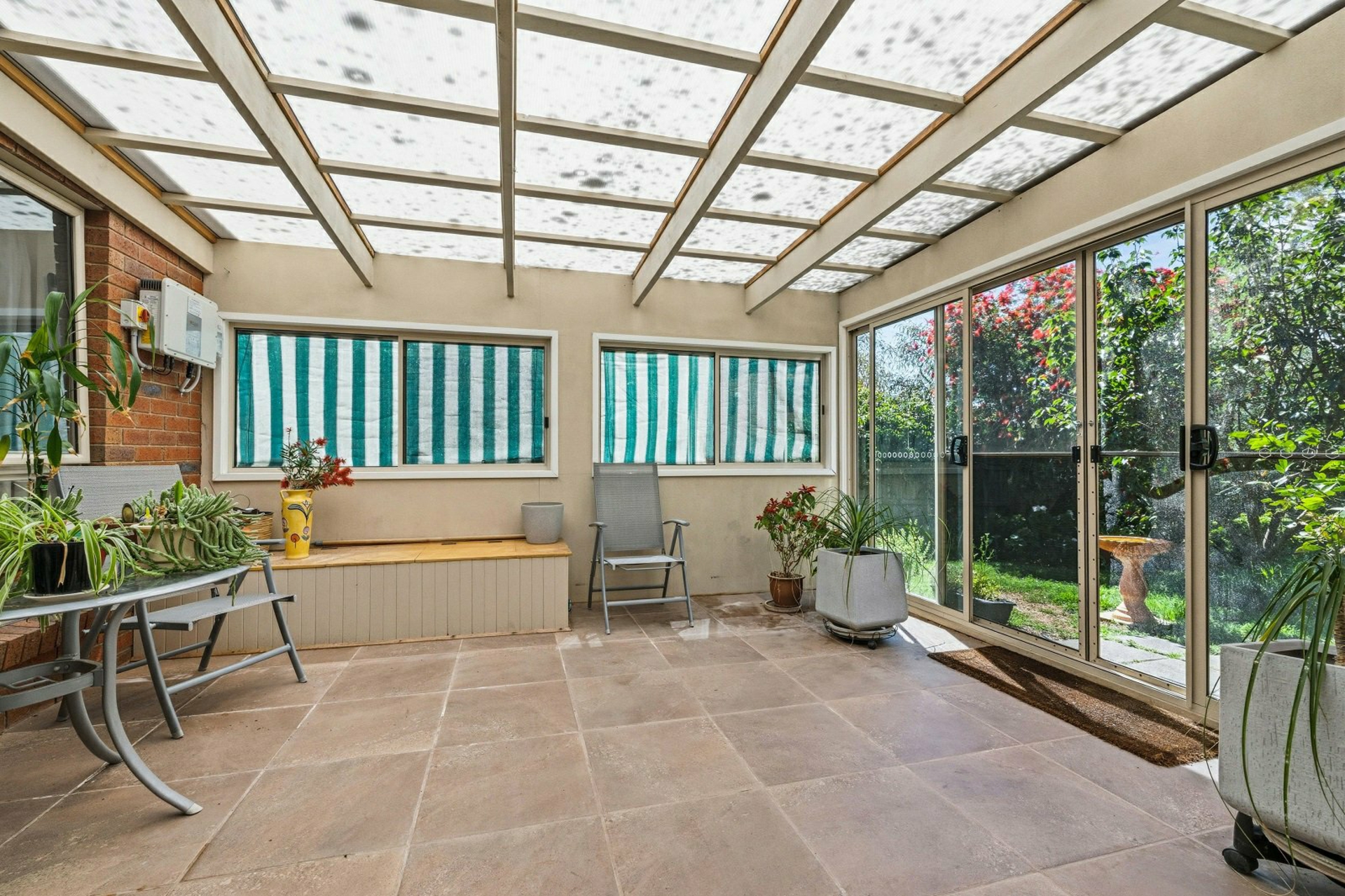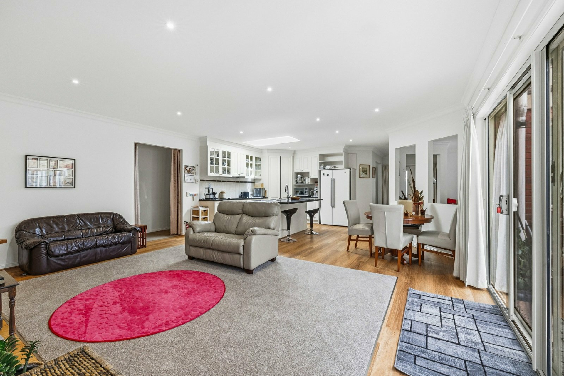 The well appointed kitchen features stone bench tops, an island bench, induction cooktop and dishwasher, with seamless flow through to the fully enclosed outdoor room, ideal for year round entertaining.