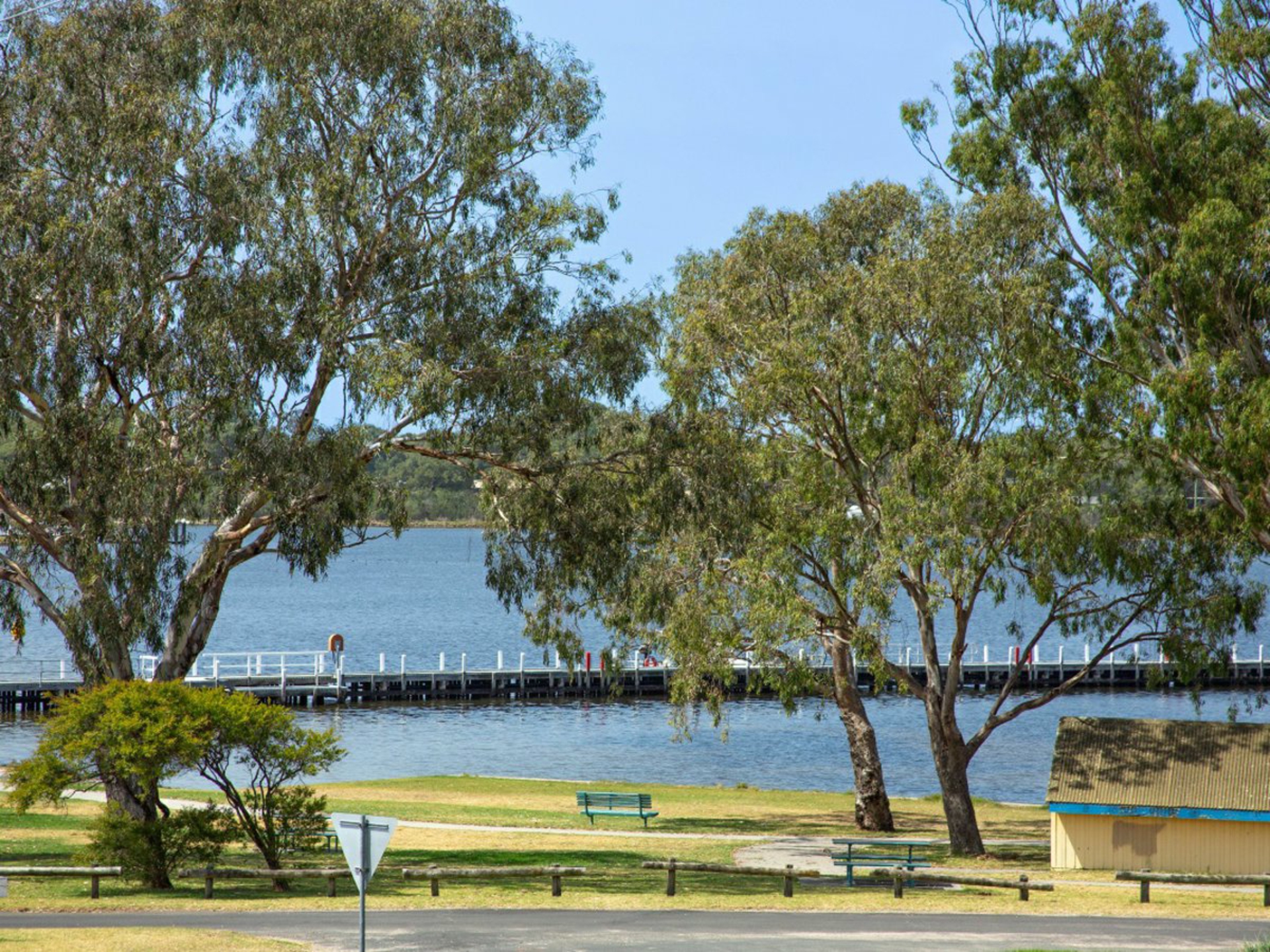 Discover the epitome of living 150 meters from the lake in this charming two bedroom unit, offering breathtaking views of the shimmering waters. Just moments from downtown shops, the waterfront and an IGA supermarket, this residence boasts a seamless open plan design with a living area that opens to a view deck. The kitchen features electric wall oven and a dishwasher. The master bedroom includes a walk-in robe and direct bathroom access, second bedroom has built-in robes. With a laundry, separate toilet, garage, carport, and rear covered deck, this home offers both convenience and tranquility. Enjoy paddling or swimming just meters from your doorstep.