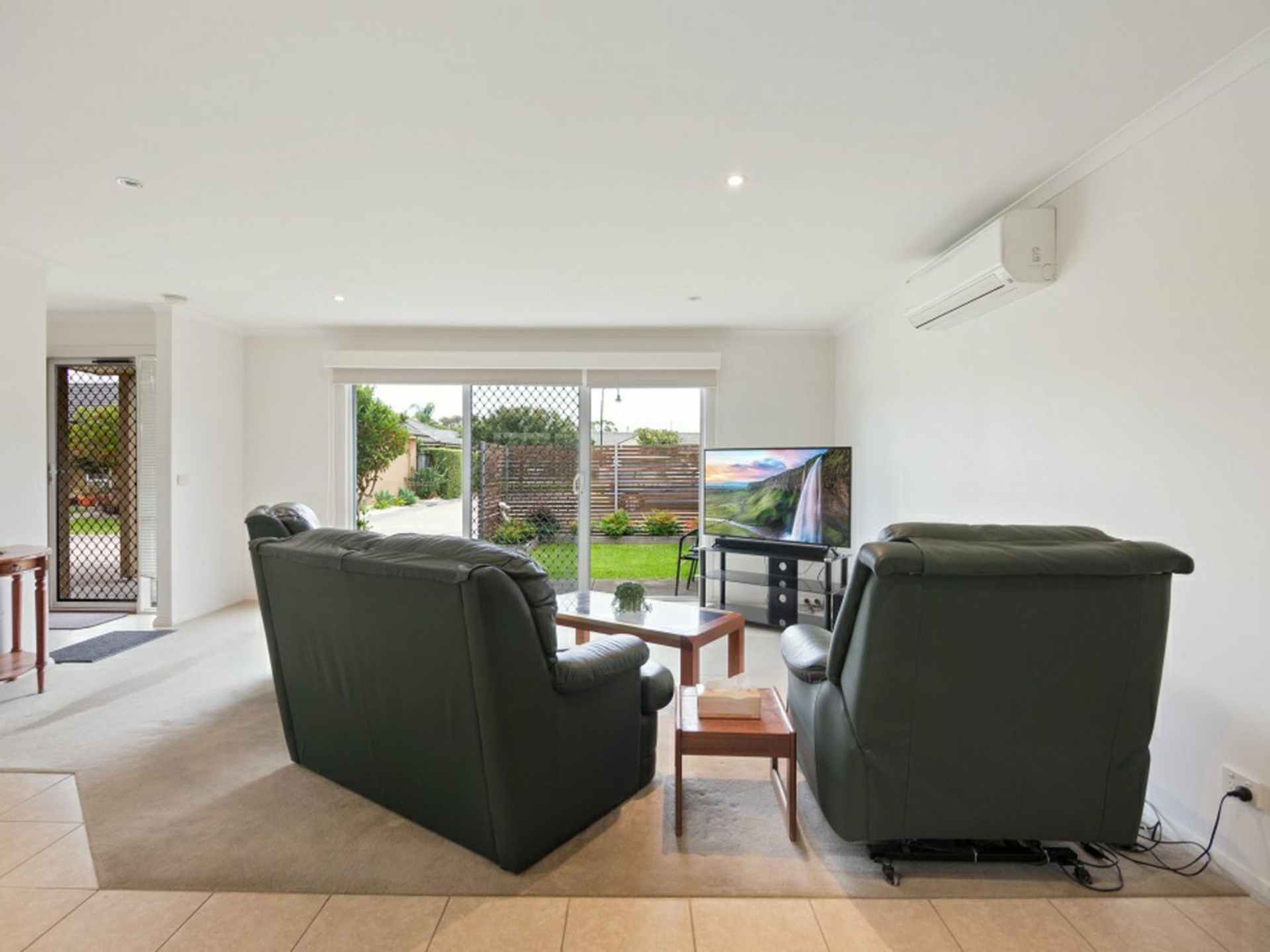 Perfectly positioned in the heart of town, this spacious three bedroom unit offers an unbeatable lifestyle with shops and the waterfront just moments away. A welcoming entry foyer leads into the open plan living area, bathed in northern light and overlooking beautifully maintained communal lawns and gardens. The carpeted sitting area seamlessly flows into the tiled meals and kitchen space, where sliding glass doors open to a covered outdoor area and private grassy courtyard ideal for relaxed living.