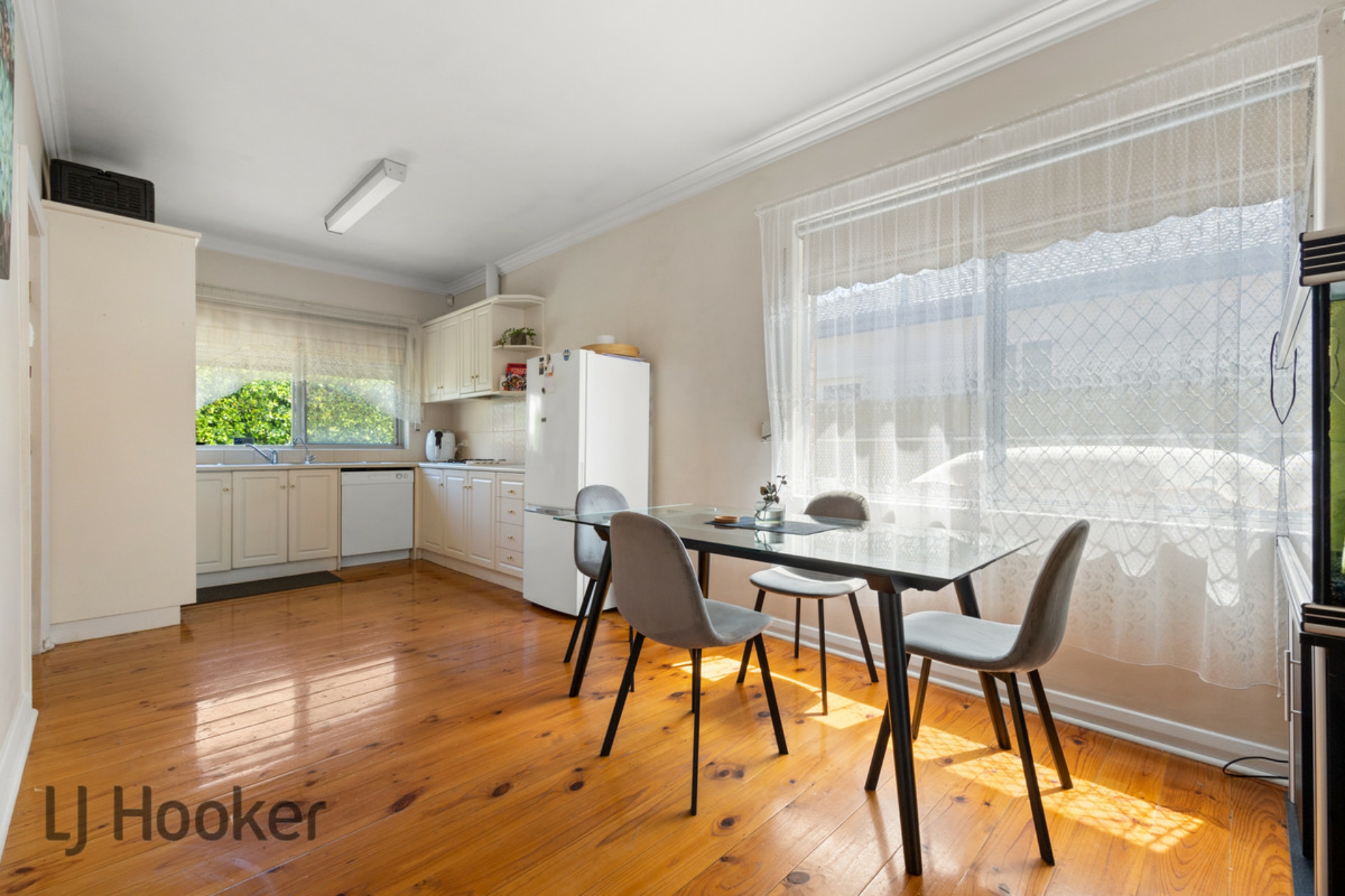 The spacious lounge area is equipped with a gas heater, perfect for those cozy nights in. The modern updated kitchen boasts a dishwasher and gas cooker, making cooking and cleaning a breeze. To ensure comfort during hot summer days, the house comes with both evaporative air conditioning and wall-mounted air conditioning units.