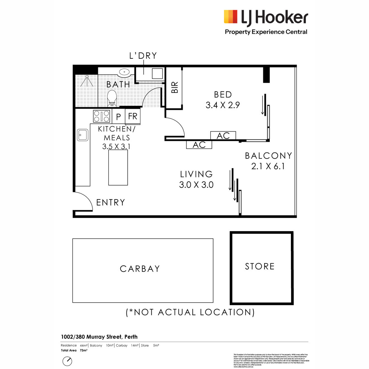 Internal: 44sqm External: 10sqm Store: 5sqm Car: 14sqm Total: 73sqm••