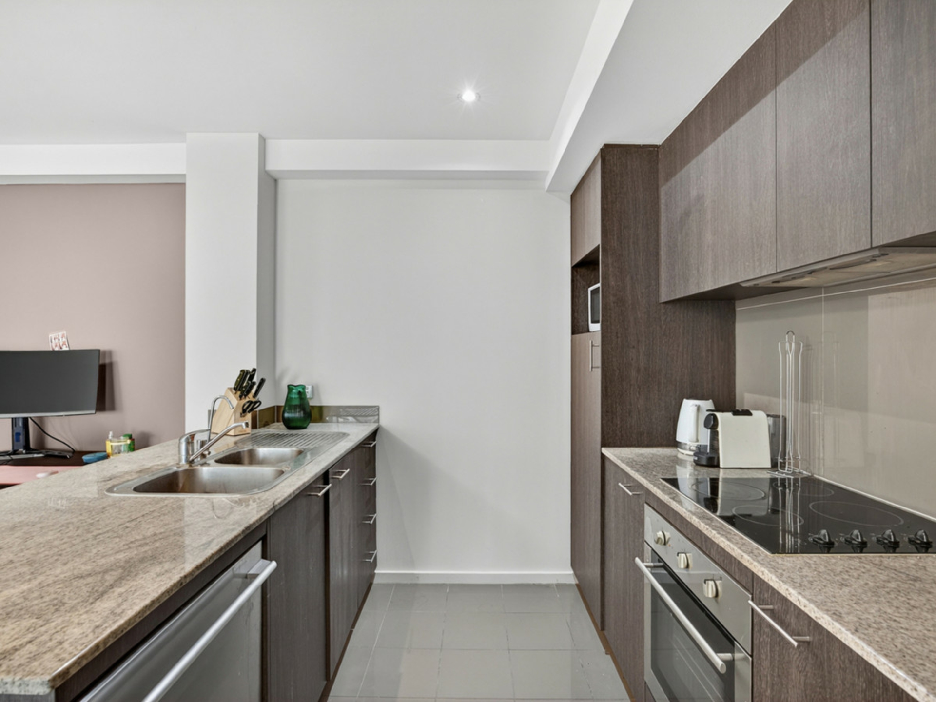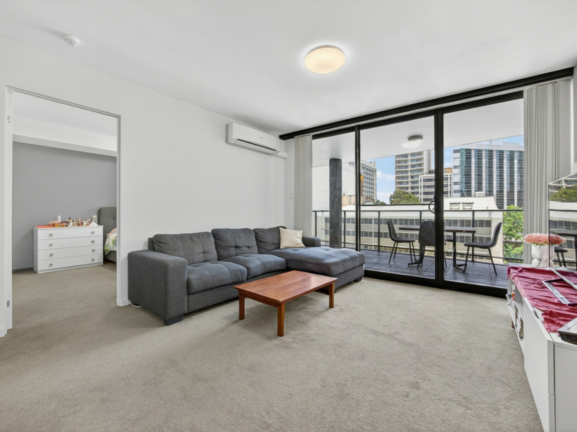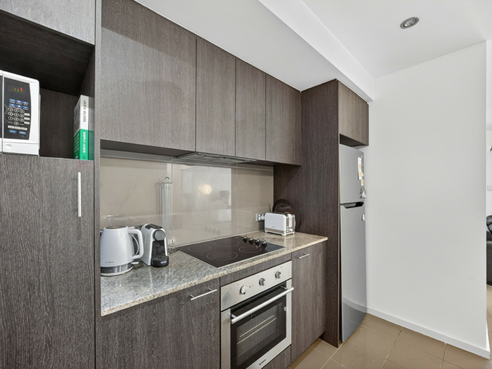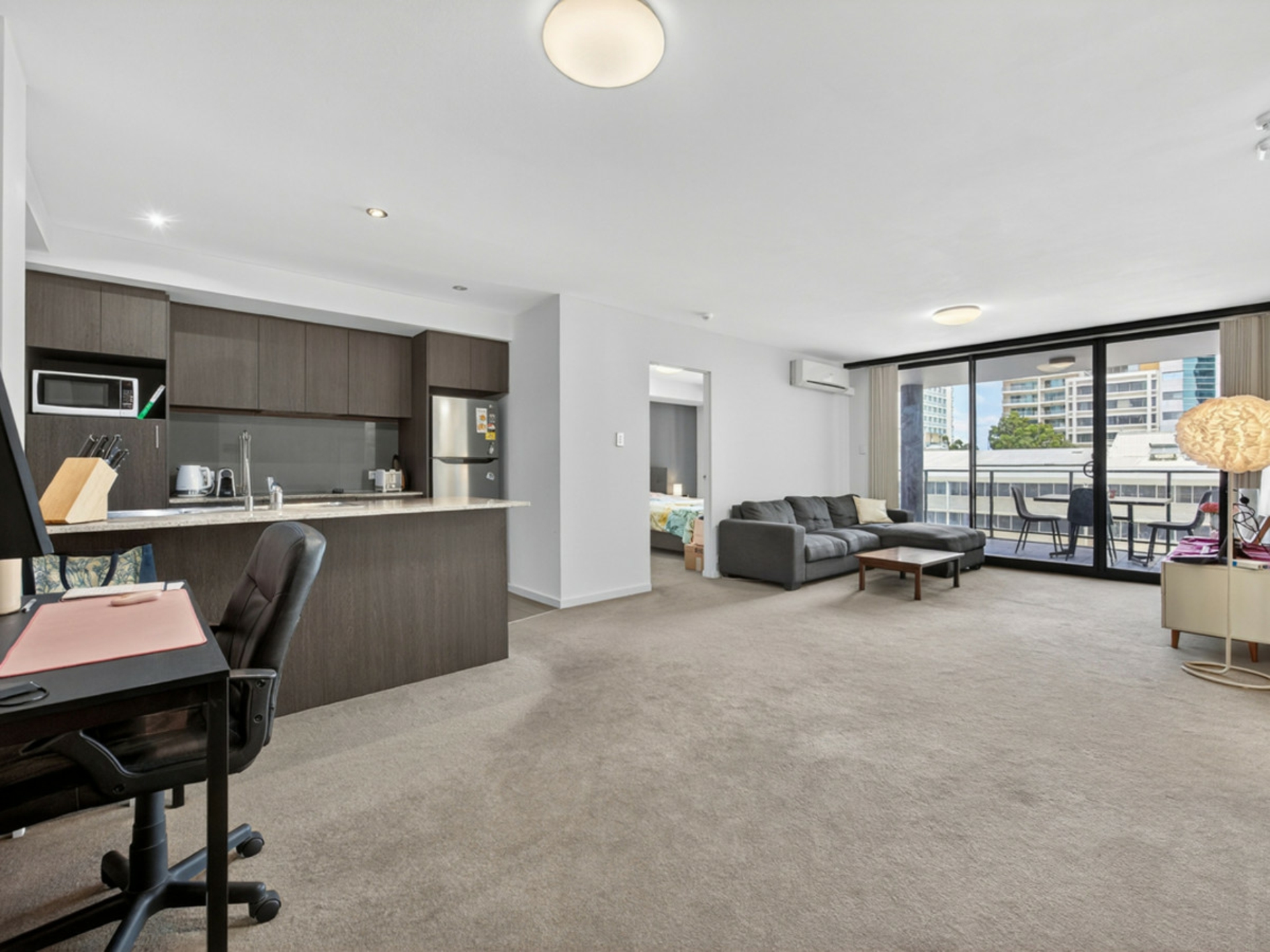 Light pours into the open-plan living zone, drawing you straight out to a generous balcony, perfect for relaxing or entertaining. The kitchen is modern and well-appointed, with quality appliances, ample storage and a smart layout, making cooking a breeze.