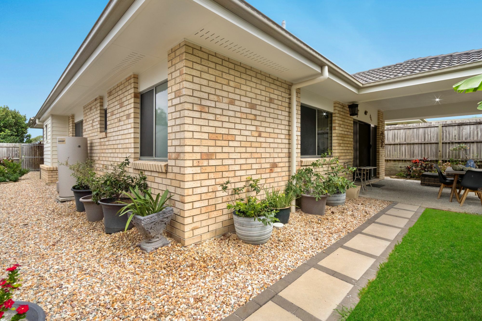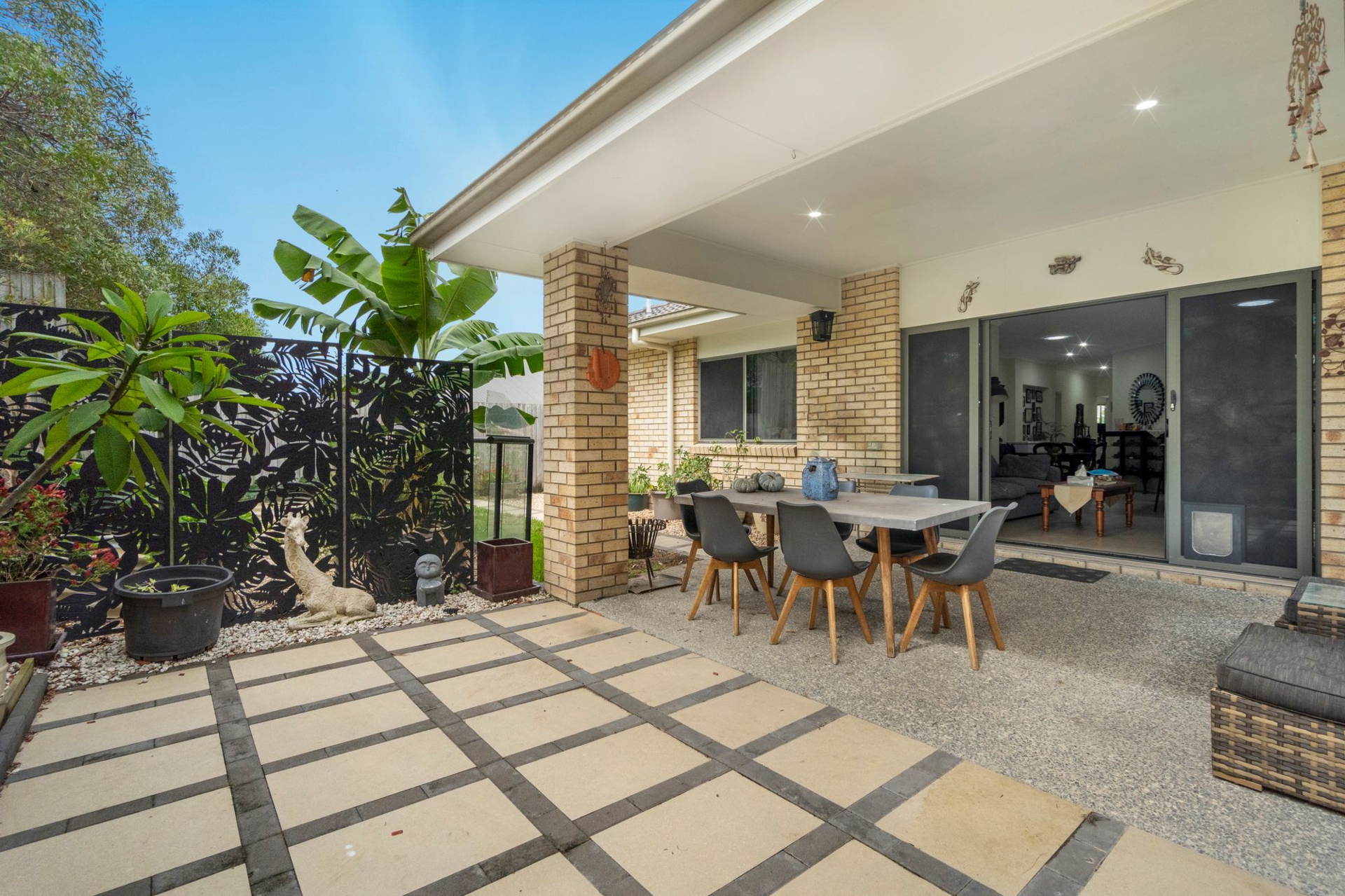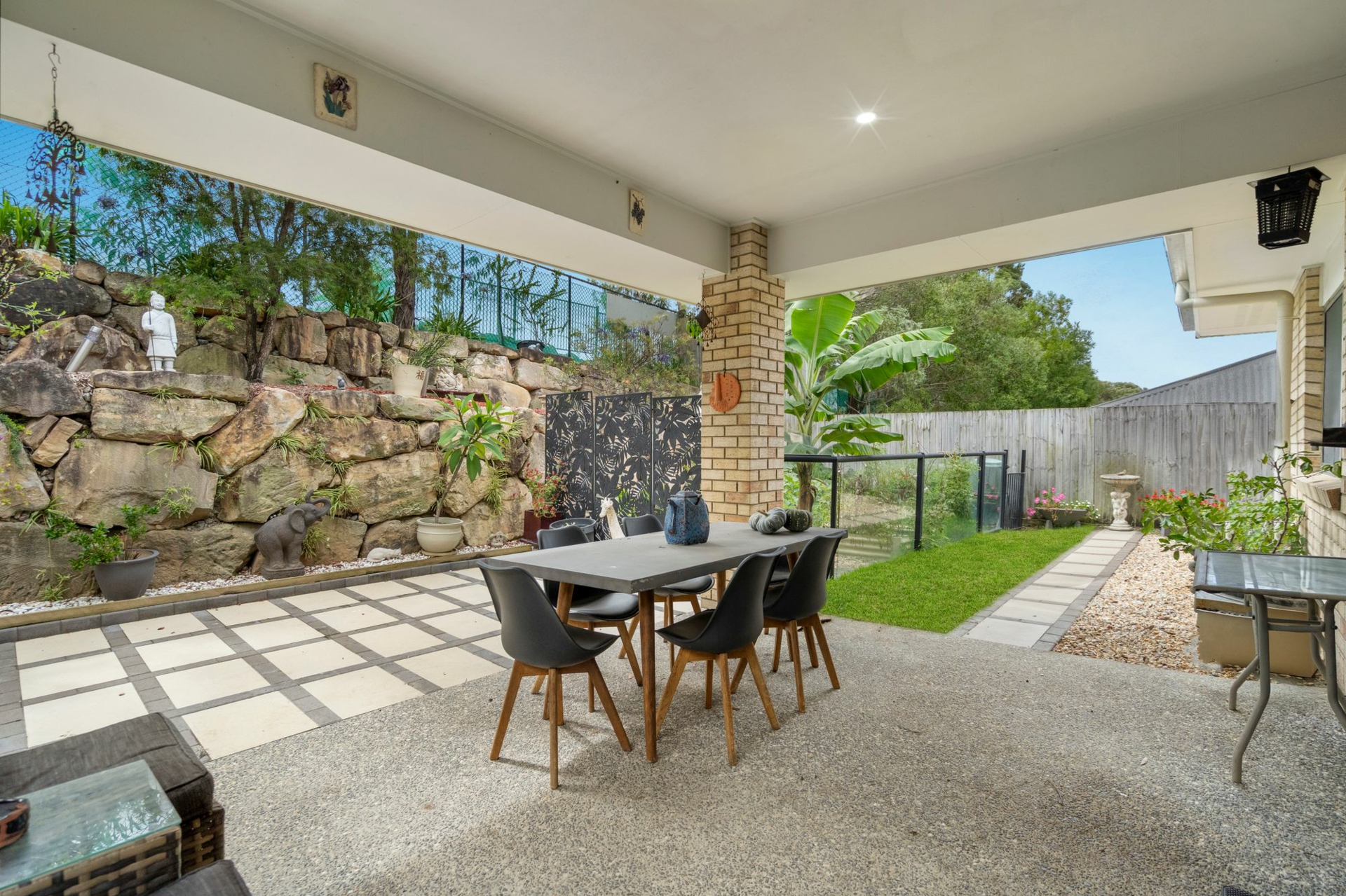 The heart of the home is an expansive open plan area that includes a well-appointed kitchen with a large stone island, perfect for casual dining, complemented by a newly created walk-in pantry. Two more skylights along with LED downlights and air conditioning, ensure a well-lit and comfortable environment. The adjacent alfresco area invites you to enjoy the Queensland sunshine with ease.