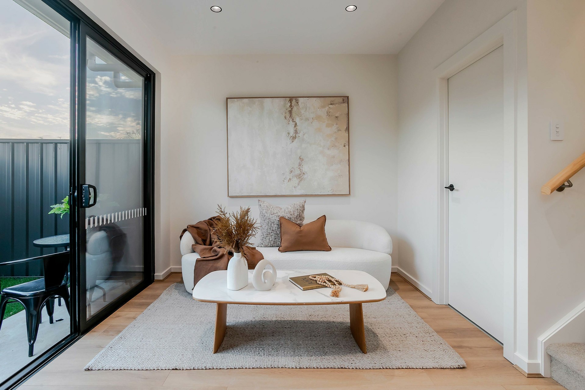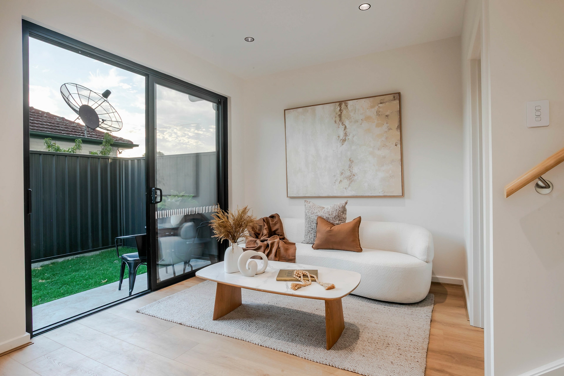 Outside, the low-maintenance garden and tidy courtyard offer a perfect balance of lifestyle and ease, with a small lawn area ideal for morning coffees, weekend relaxation, or intimate gatherings with friends.