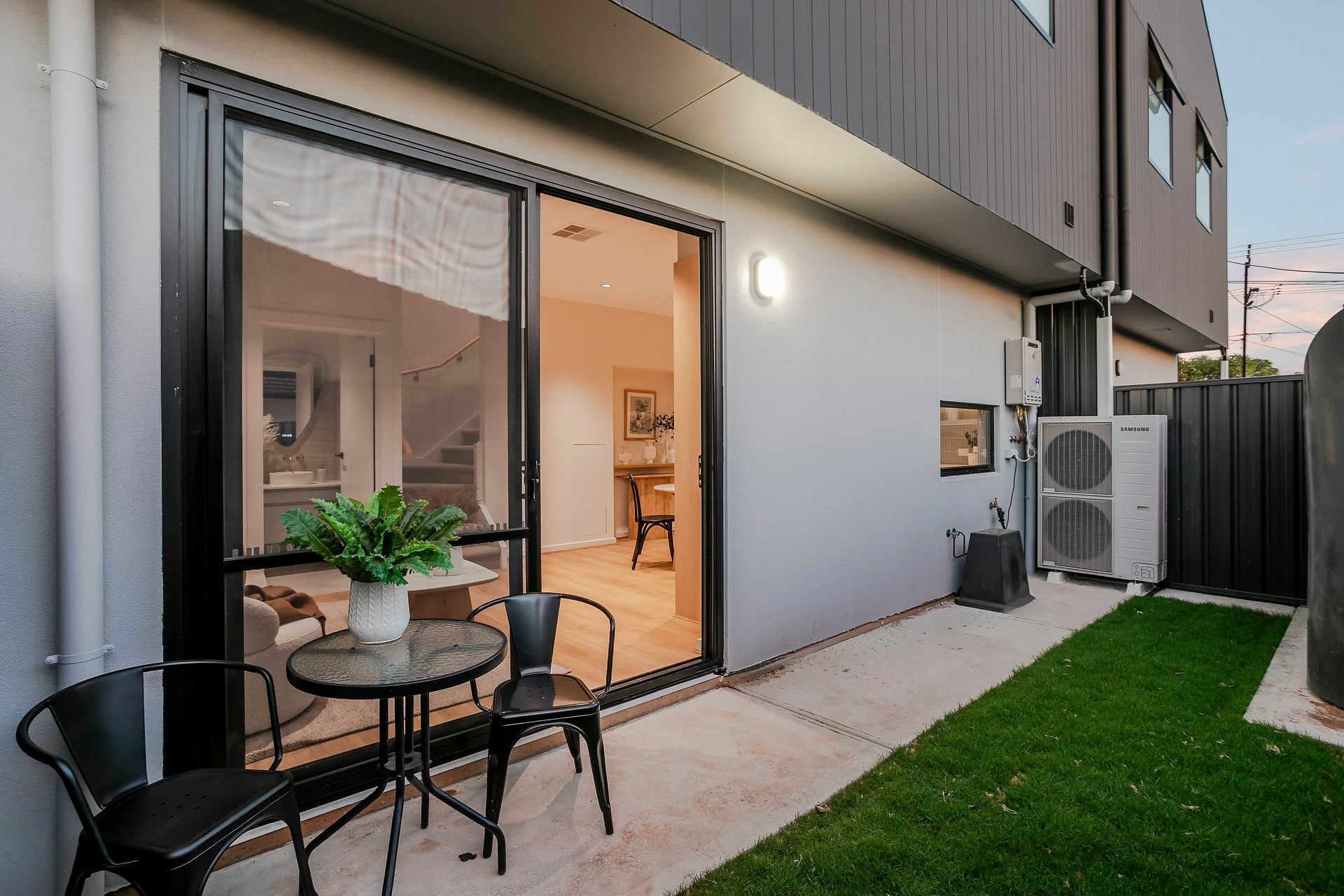 - Low-maintenance courtyard with lawn, ideal for entertaining