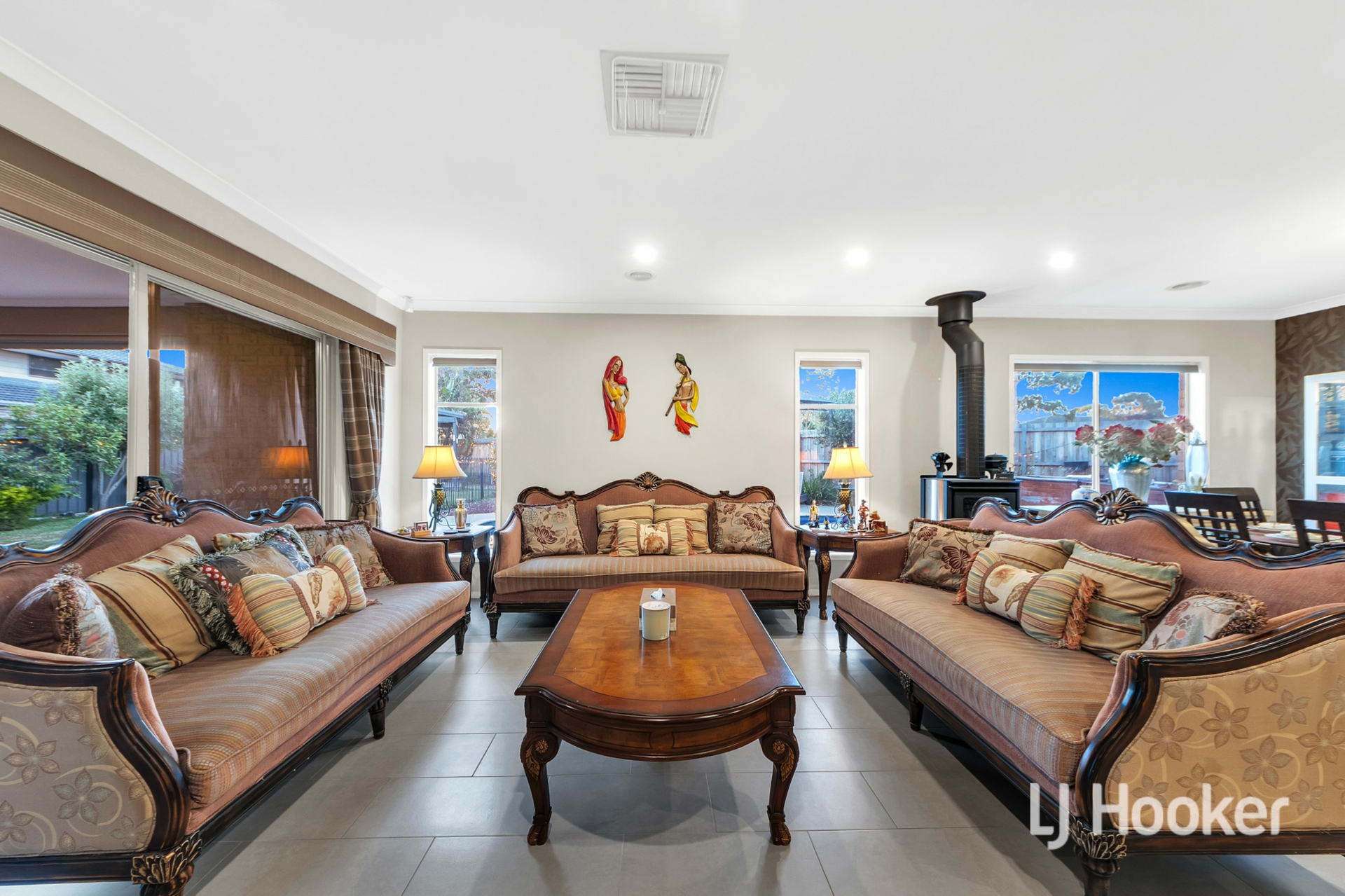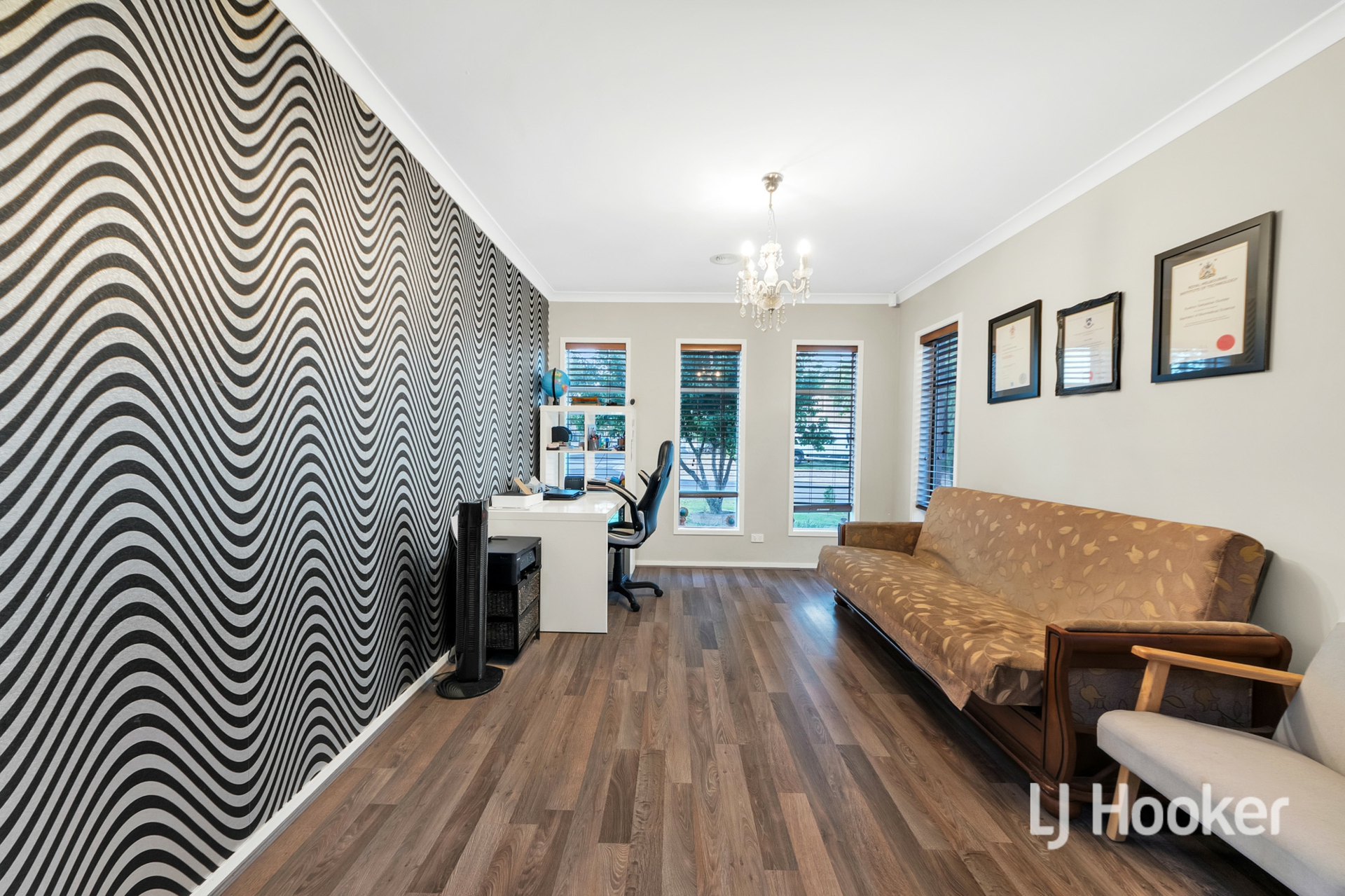 - Four charming bedrooms with unique feature walls include a main suite with a walk-in robe, split-system air-conditioning and a stylish ensuite featuring an oversized shower, dual vanity and bathtub, while the three remaining bedrooms are fitted with built-in robes and serviced by a central family bathroom with a second bathtub.