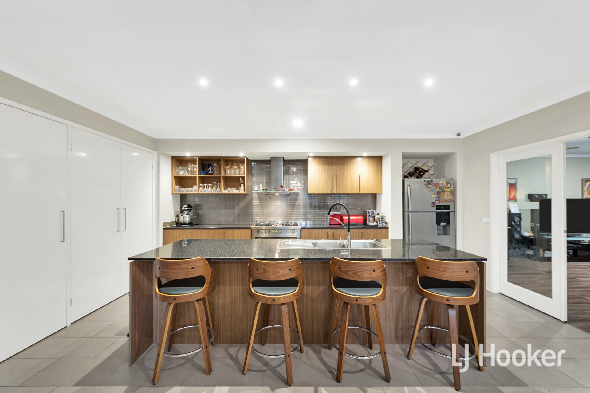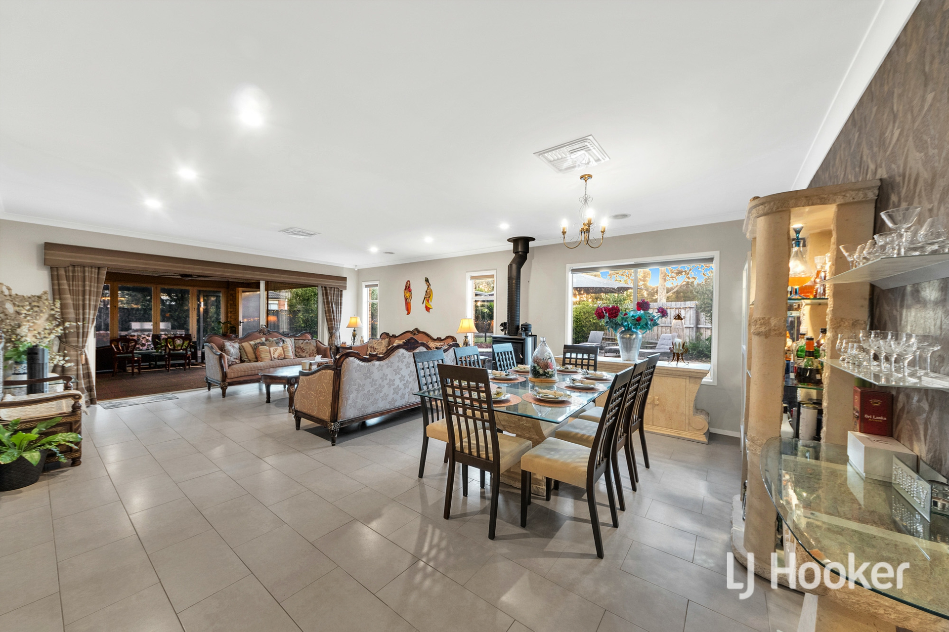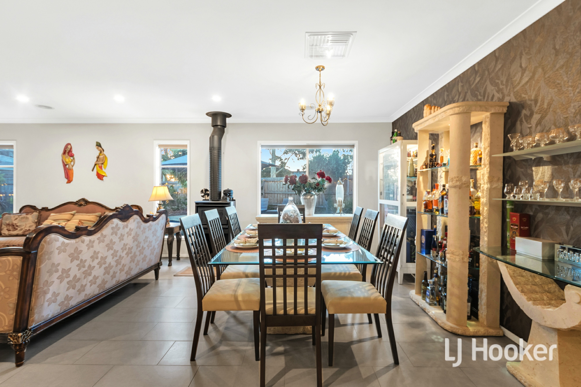 - The well-lit chef's kitchen is fitted with granite bench tops, plenty of storage options, quality appliances, and is directly next to the meals area with charming wood fireplace.