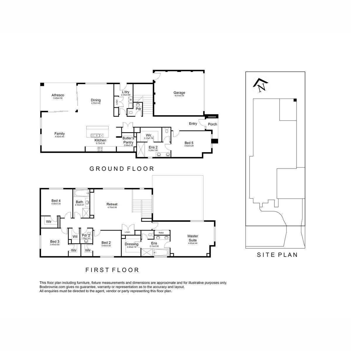 - Four bedrooms are located upstairs including the main bedroom which boasts a luxurious en suite with dual basins, bath and oversized shower, separate toilet and spacious walk in robe/dressing room. The remaining bedrooms all include walk in robes plus there is a fifth bedroom downstairs also complete with walk in robe and en suite with dual basins and oversized shower making it perfect for guest accommodation.