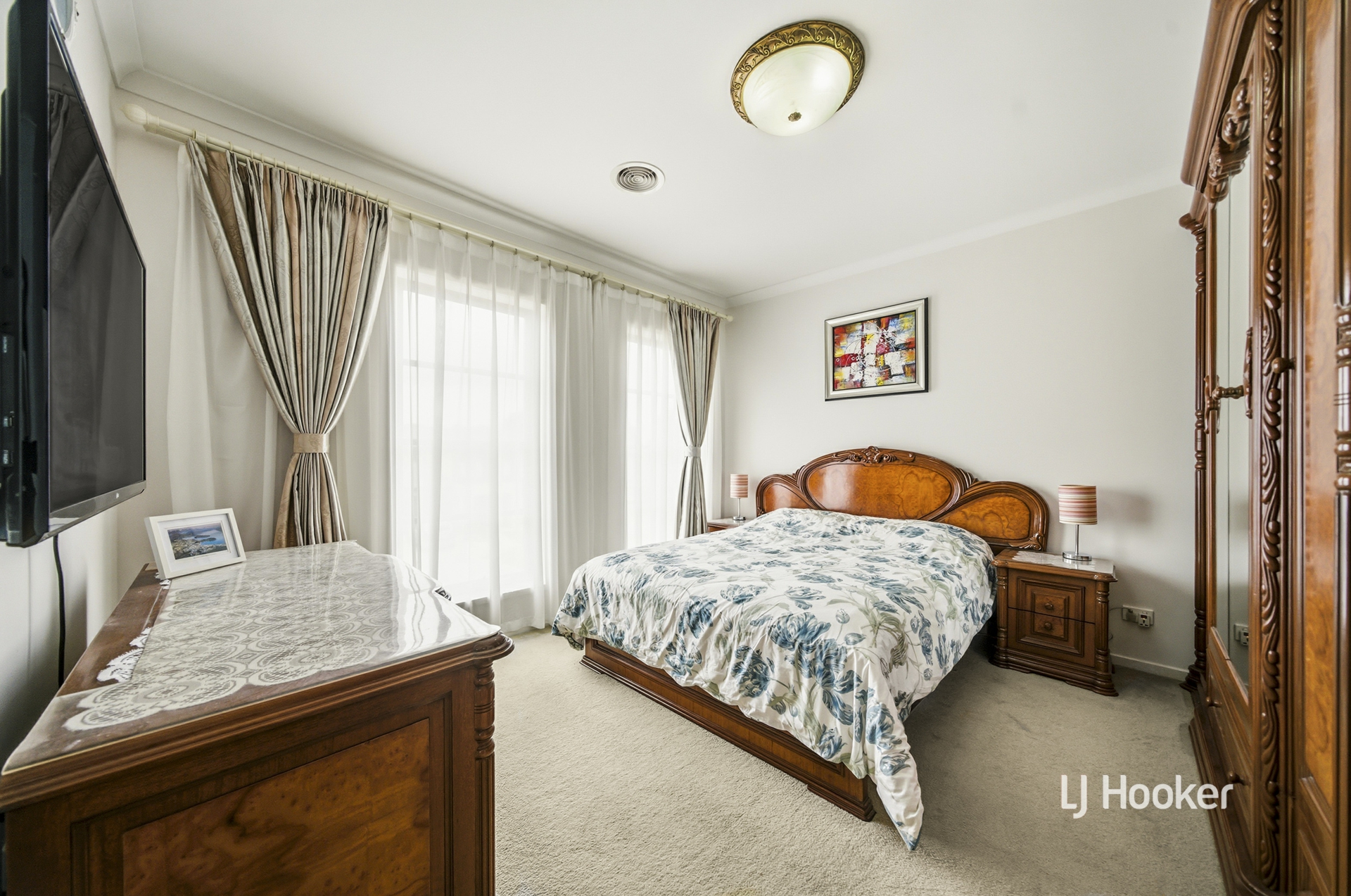- Boasting four carpeted upstairs bedrooms, the luxurious main is fitted with walk-in robe and modern ensuite, as well as balcony access, while the remaining bedrooms are equipped with built-in robes and serviced by the central main bathroom featuring a relaxing bathtub and separate toilet. A downstairs powder room offers additional convenience.