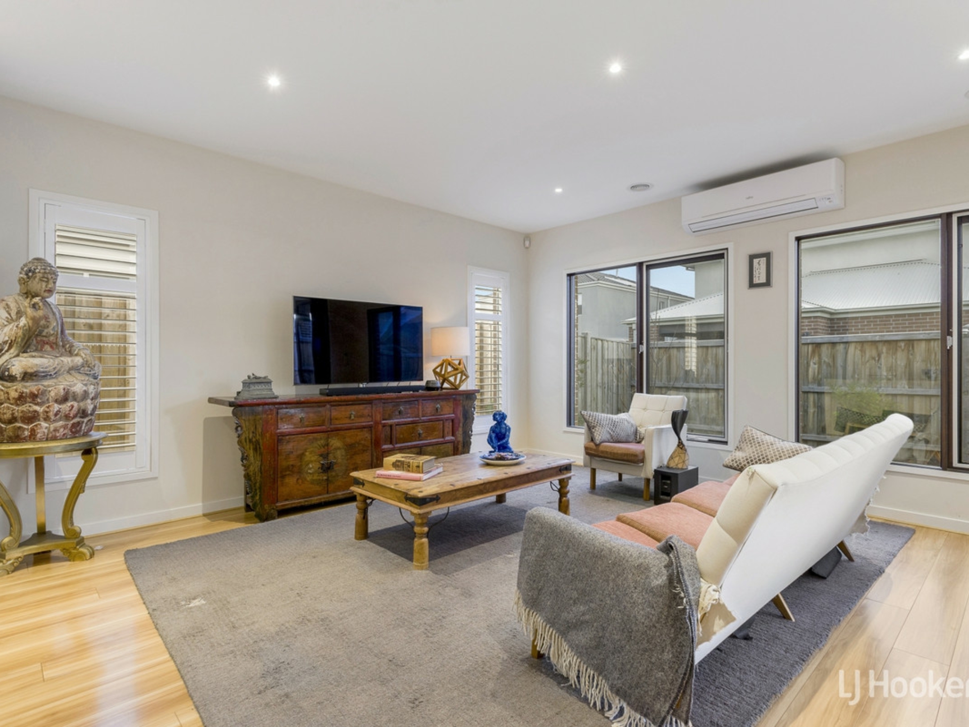 - Other features include split system air conditioning, ducted heating, separate laundry, alarm system, high speed optic fibre, solid floating slab construction, exterior blinds on west facing windows and front landscaping.